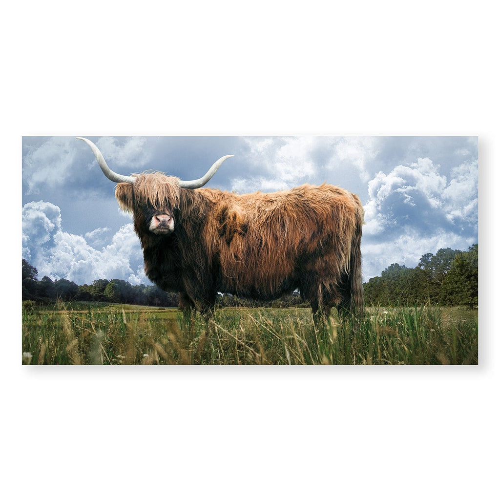 Give any open wall in your home a tasteful touch of glamour with this painting print. This canvas showcases a highland cow in the middle of a field.