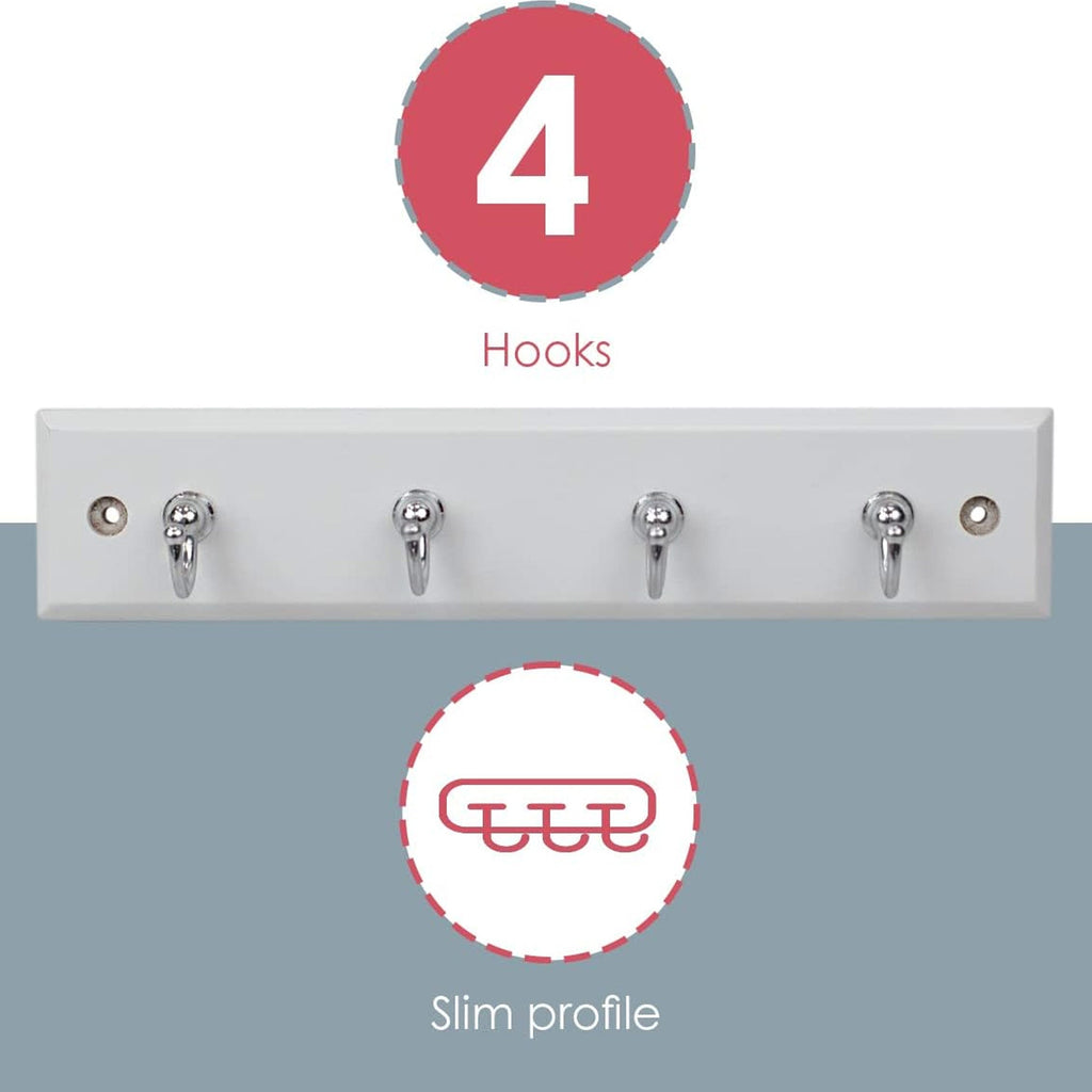 Home Basics 4 Hook Wall Mounted Key Holder Rack, White