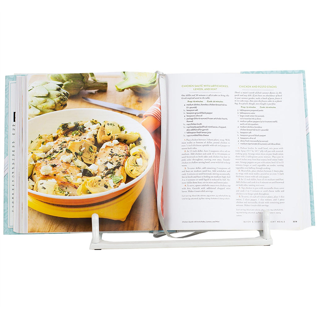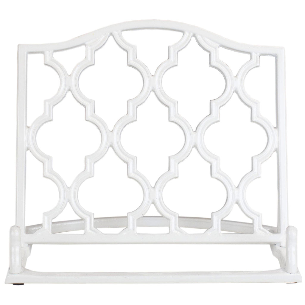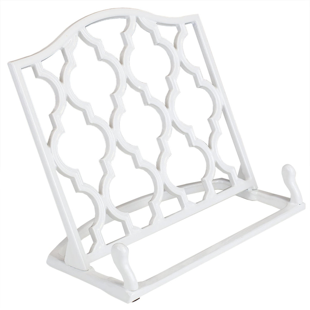 The Home Basics Moroccan Lattice Collection cookbook stand holder is the piece you’re missing in your kitchen. This cookbook stand holder is very sturdy, rust-resistant and beautifully designed. It also keeps your cookbook right where you want it and in full view while cooking your favorite dishes. Time to have fun in the kitchen, get organized and do it all in style! This cookbook stand is made of cast iron with enamel coating. Features a beautiful Moroccan lattice design with a modern twist that will update your kitchen design all in one step. Match with other Moroccan lattice collection products. CARE INSTRUCTIONS: Hand wash only. MATERIAL: Cast Iron metal. COLOR: White. SIZE: 10.5x5.5x9 Inches.