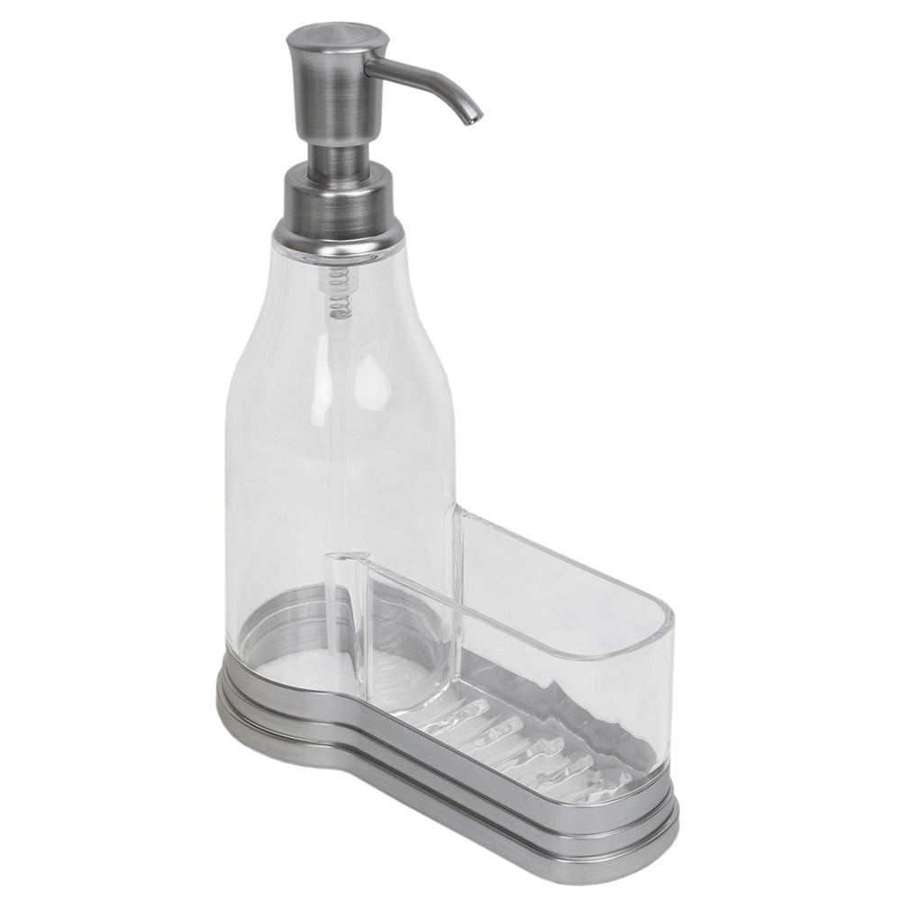 You’ve been through many soap dispensers and they never seem to meet your expectations. It’s either they slip-around on that porcelain vanity, fall apart, or rust easily! Lucky for you, this soap dispenser with brushed steel top is built to last and looks lovely right along side your sink. The steel bottom keeps it in place, while the high-efficiency pumps features a smooth-as-silk finish to make dispening quick and easy. The reservoir offers a generous capacity, so you’ll never have to worry about constant refills. But should you need to, the clear base lets you know how much is left. Simply unscrew the top to refill. Tap the steel pump lightly to dispense a small portion to quickly clean your hands. Or tap it all the down to clean up those mountain of dishes you've been putting off for days. The soap dispenser also features a fixed sponge holder to keep a sponge handy.
