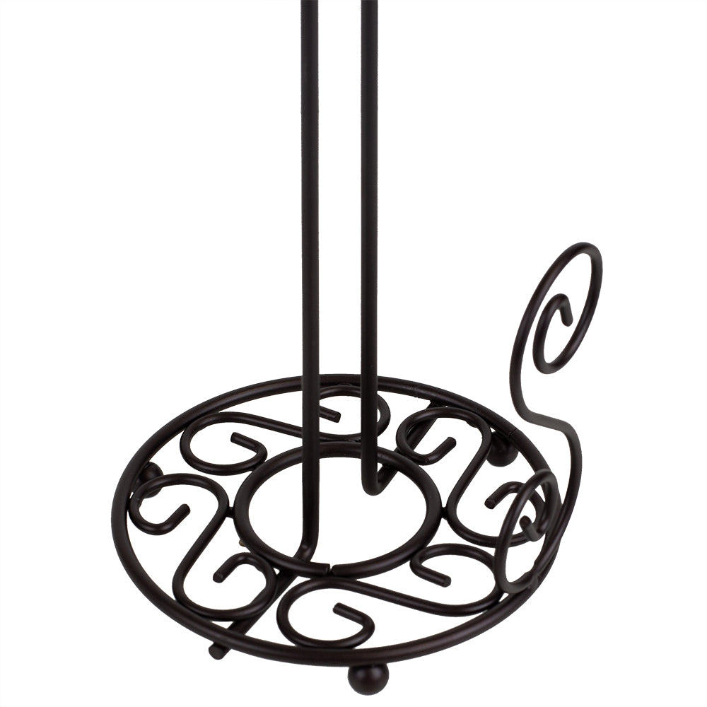Home Basics Scroll Collection Paper Towel Holder is the piece you’re missing in your kitchen. This product is very sturdy, rust-resistant and beautifully designed overall. It also allocates that roll of paper towels you never seem to find and travels everywhere. So ground your paper towels, get organized and do it all in style! Care Instructions: Hand wash only. Material: Metal. Color: Bronze. Size: 6x6x13.5 Inches.