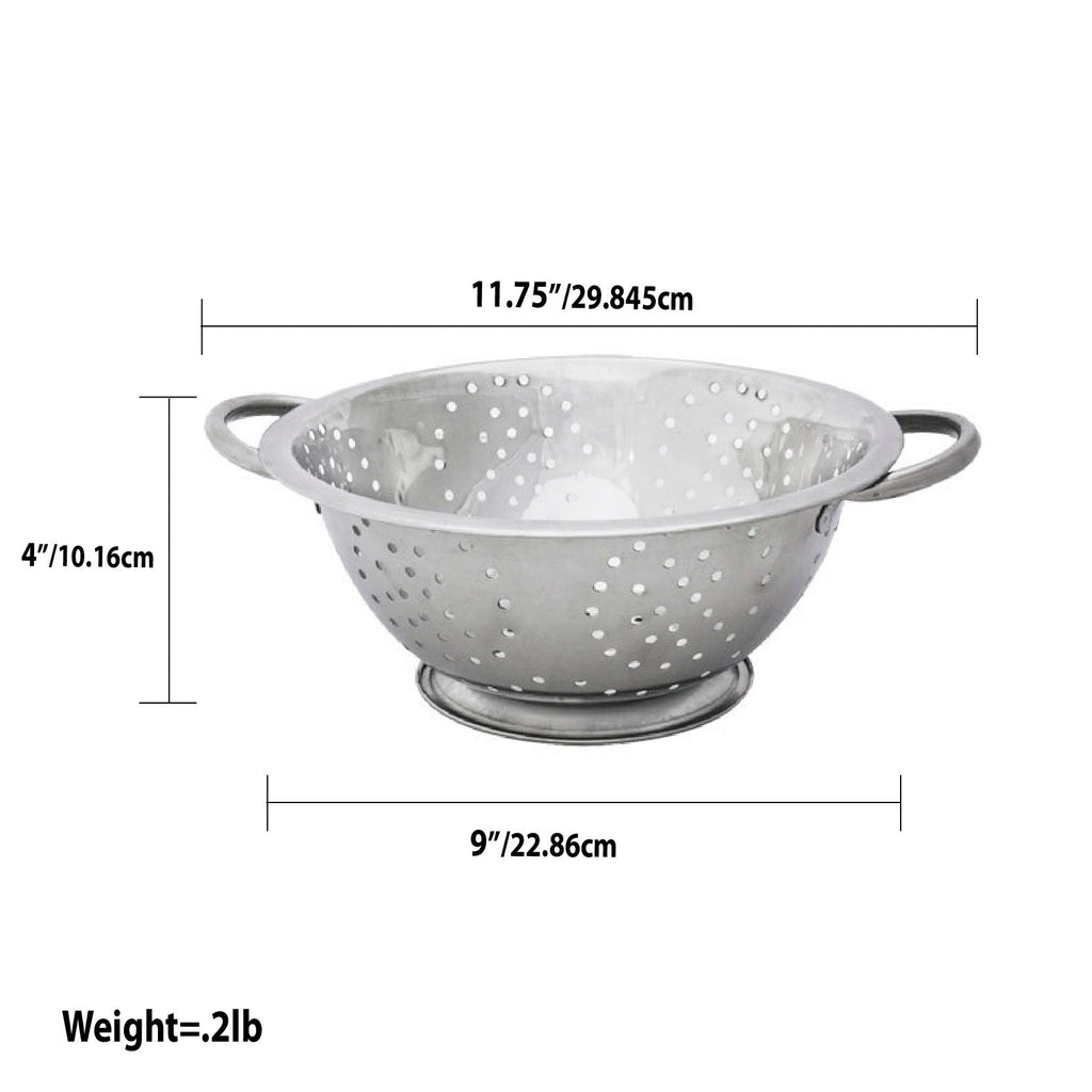 Strain pasta or wash fruit and vegetables with ease using this deep colander. This colander provides enough room to place and prepare ingredients, while the classic stainless steel finish and rounded design make it a perfect addition to any kitchen. Evenly distributed perforations around the colander and open metal handles make it quick and easy to drain cooking liquids and more. MATERIAL: Stainless Steel. SIZE: 3 Quart. COLOR: Silver