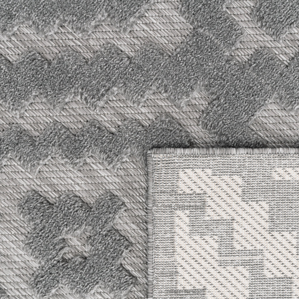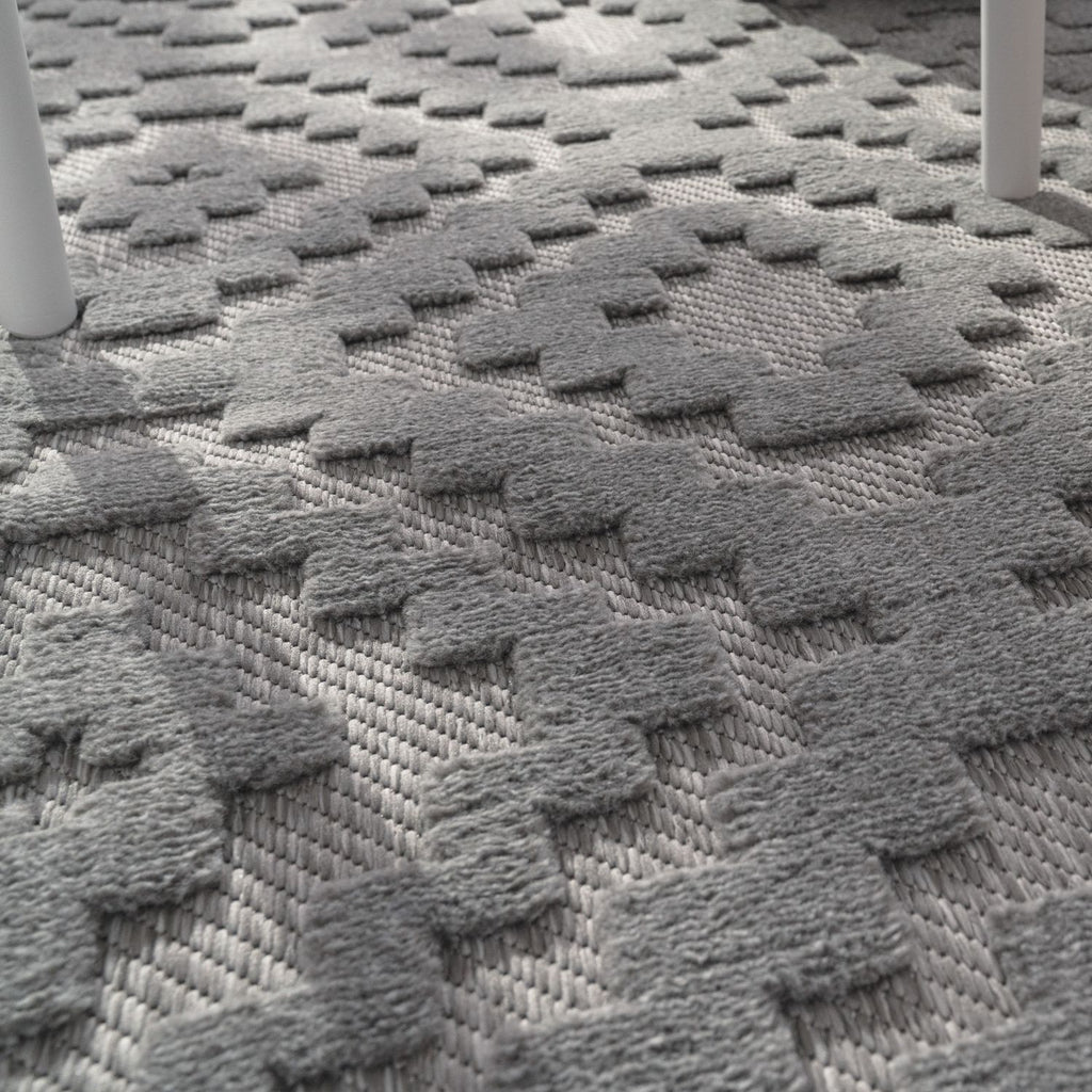 Indoor Outdoor Rug Livorno Trellis High-Low Pattern In Grey