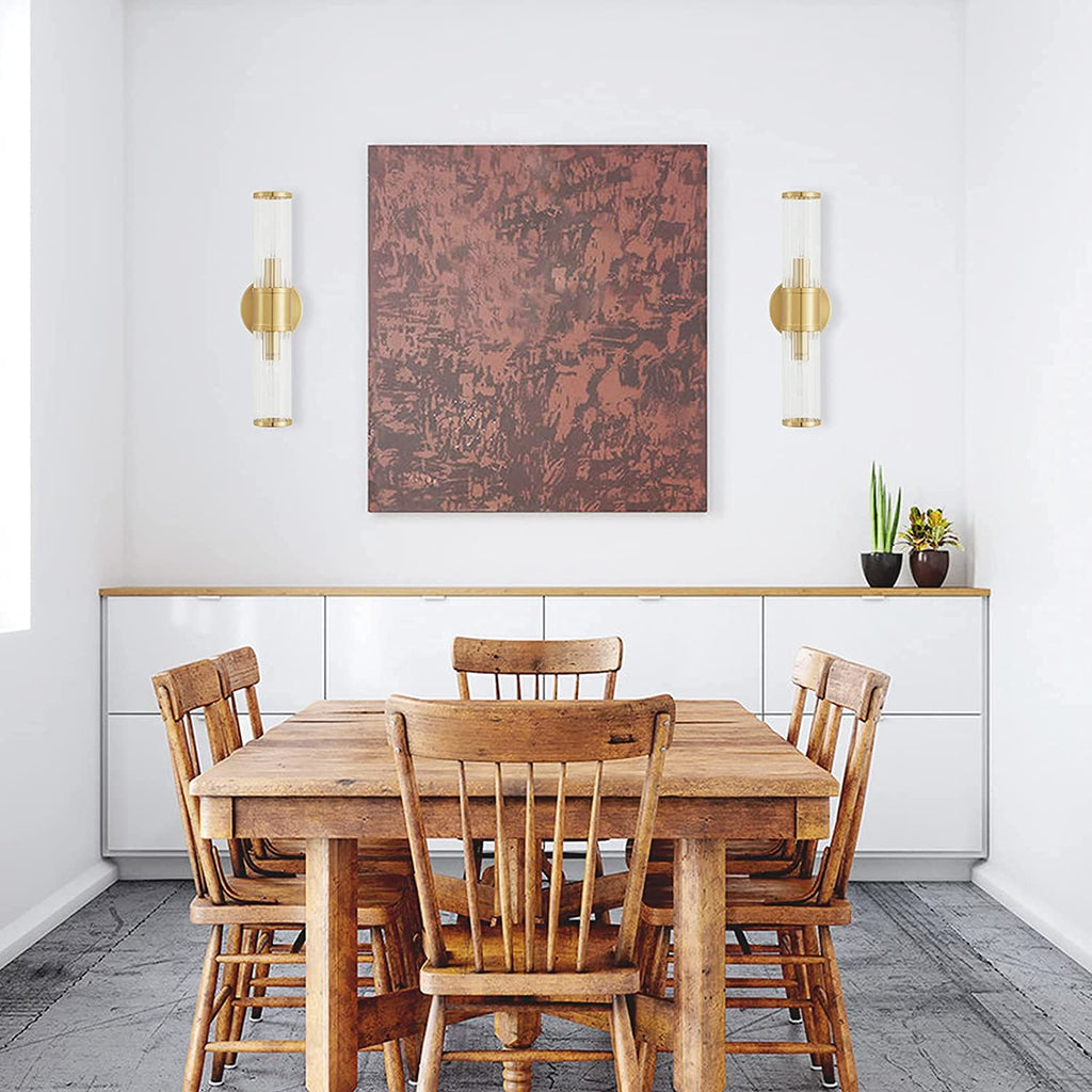 Featuring a unique clear corrugated glass shade and stylish brushed gold metal body, this modern wall light is made of high-quality metal and superb electroplating, making it sturdy and durable, it won't oxidize and fade with years of use.Perfect complement for bathroom, bedroom, dinning room, doorway, stairway or top/side of mirror.