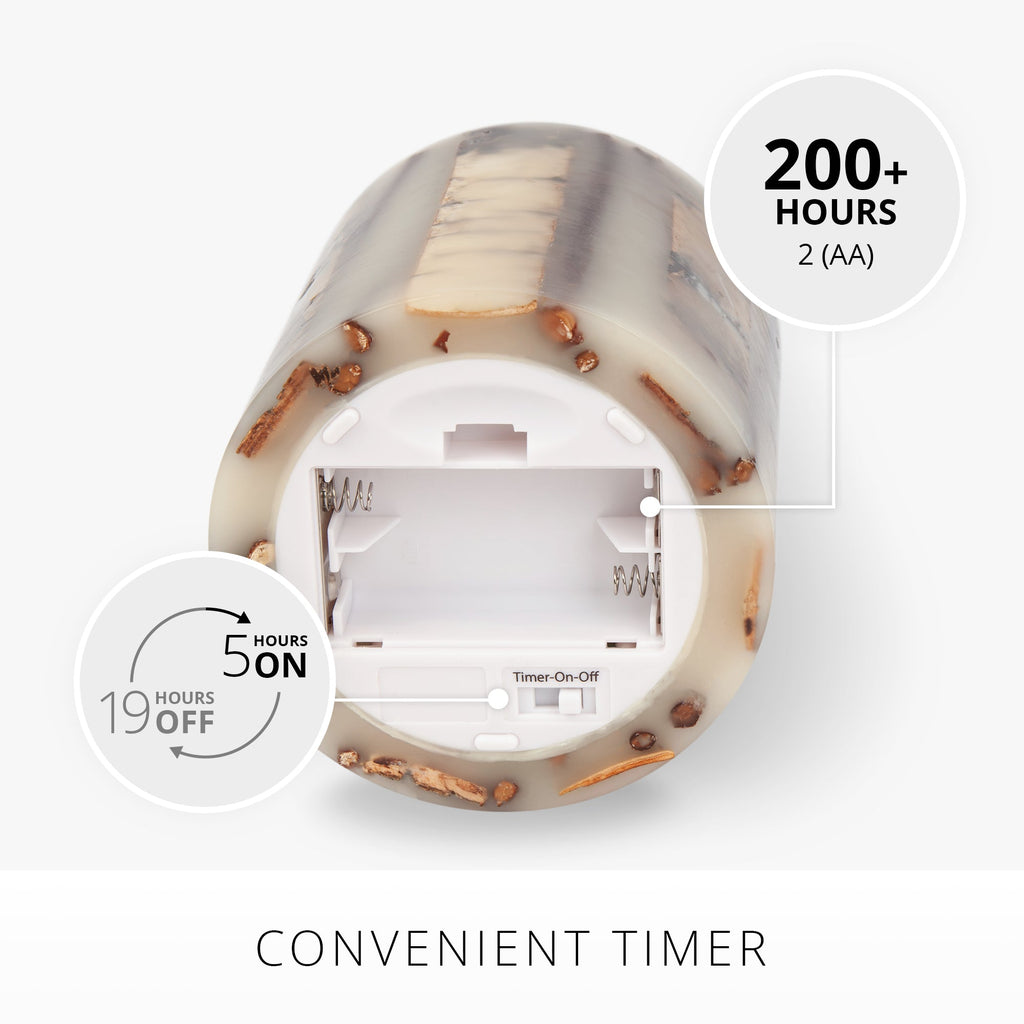 Ivory Embedded Birch and Twigs Flameless Candle Pillar