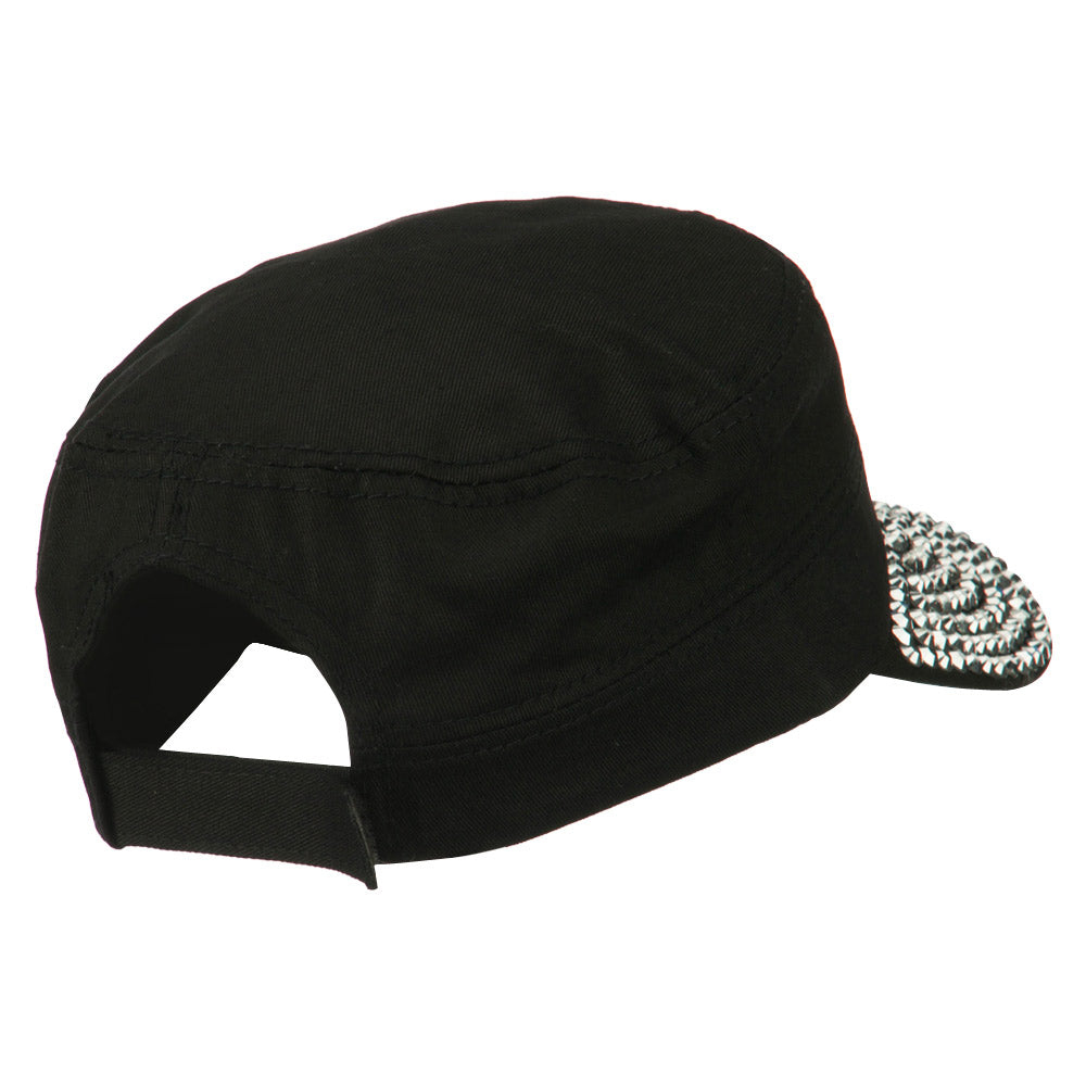 Bill Details, Shiny Silver Rhinestones, Stiff and Precurved Bill