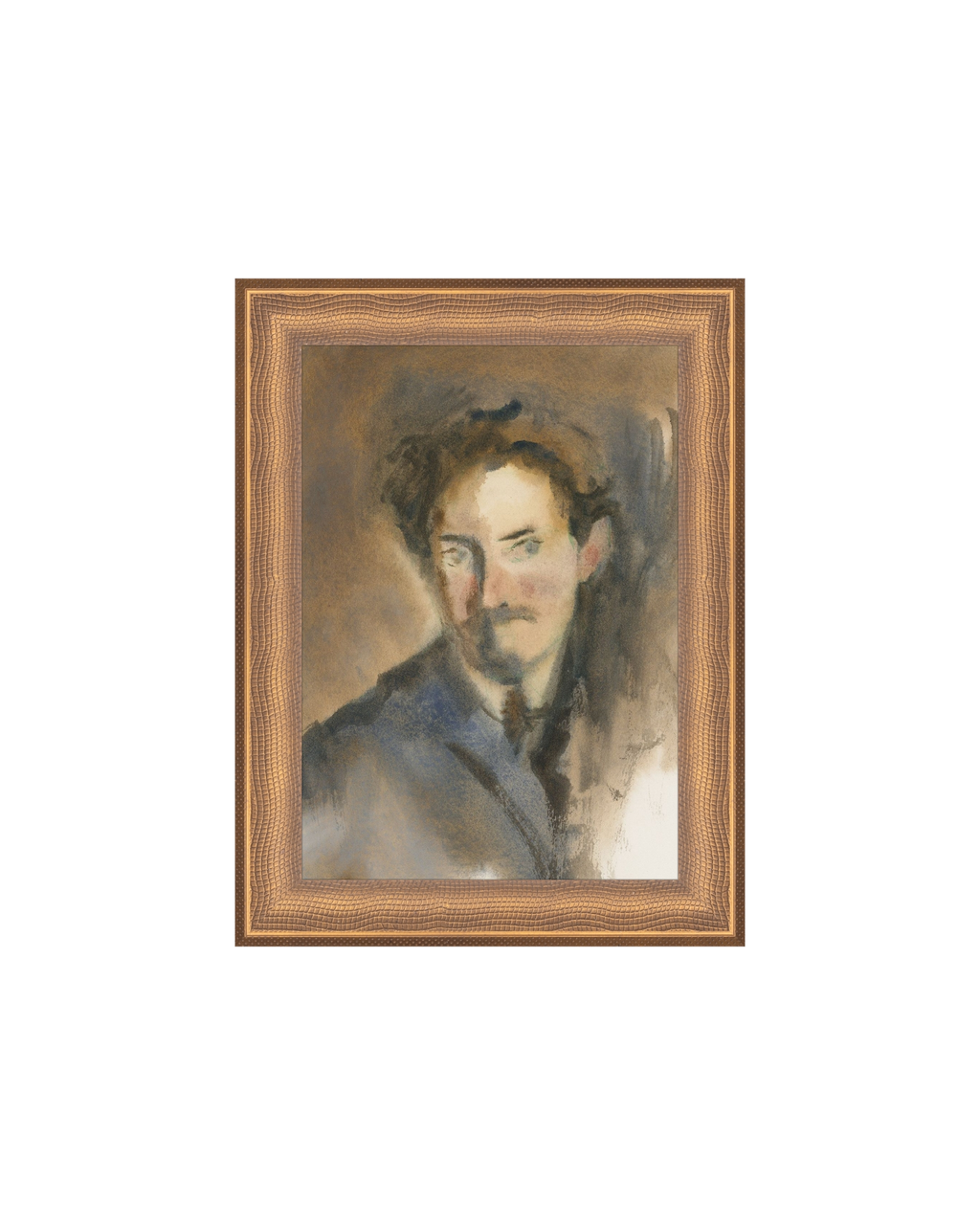 John Study features a mesmerizing blend of browns and blues, skillfully mixing and dancing across the paper to create a serene and captivating scene. This watercolor will add a touch of sophistication and tranquility to any room.