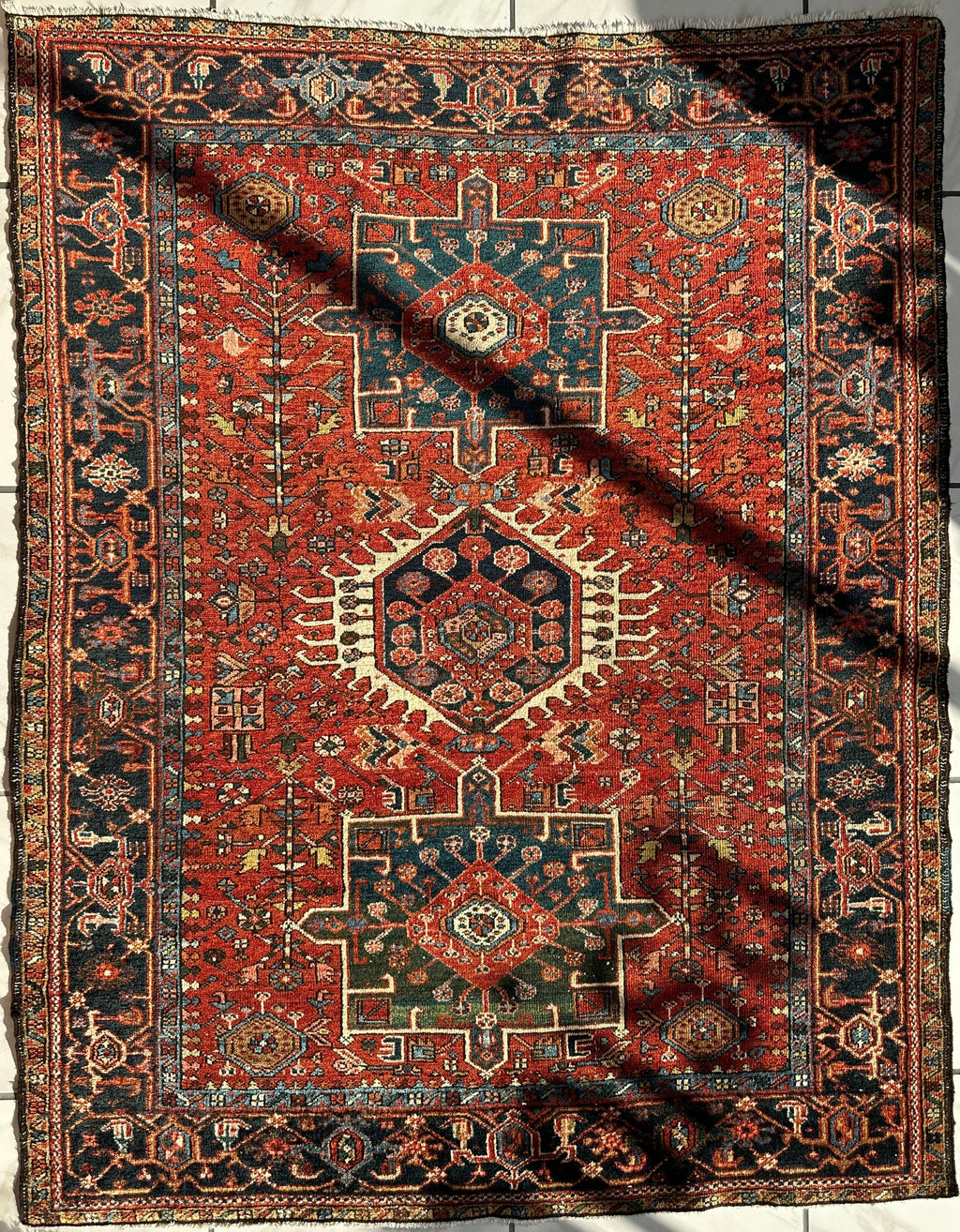 KARAJA Persian Antique Heriz Rug 4'9" x 6'