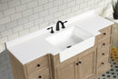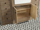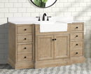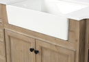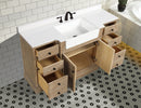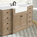 The Kelly bathroom vanity with a single sink is the perfect centerpiece for your bathroom remodel. Constructed with expert craftsmanship from solid wood, this vanity is built to withstand the test of time. The wood is finished with raised grain to achieve a distressed and reclaimed wood appearance that adds charm to any bathroom. With six solid wood dovetail drawers equipped with full extension glides, you have ample storage space for all your daily toiletries. The vanity is topped with an white engineered stone countertop to complete the farmhouse style.