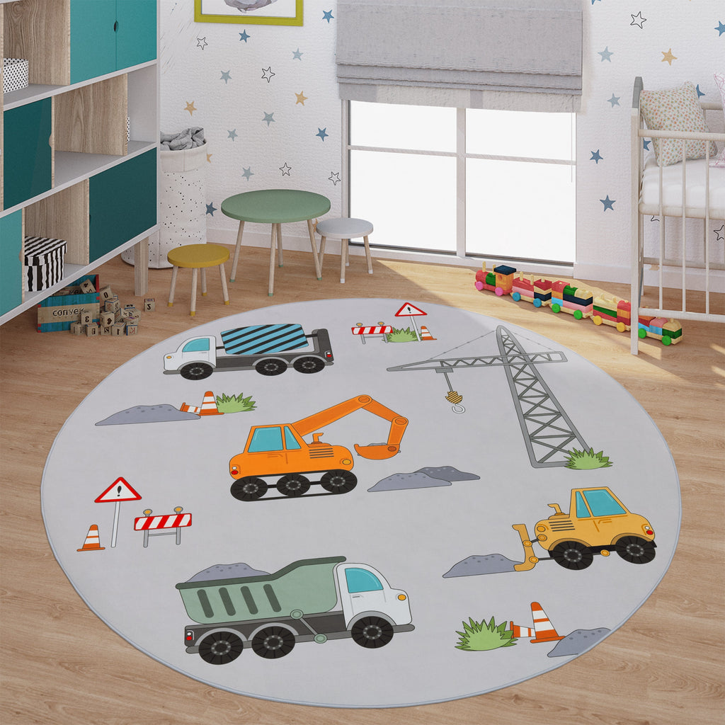 Kids Play-Mat Bob Construction Site with Trucks & Cranes in Grey