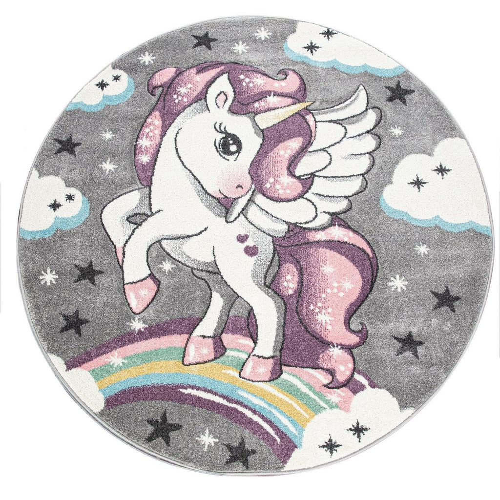 Kids Rug Rainbow Unicorn Colourful Grey