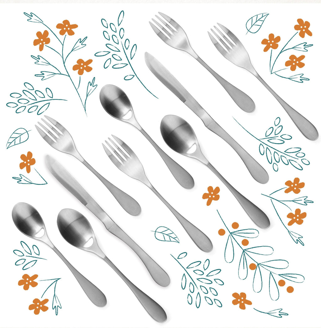 *Each set contains (4) each of the dinner fork, salad fork, table spoon, teaspoon, and dinner knife--place settings for 4 people.