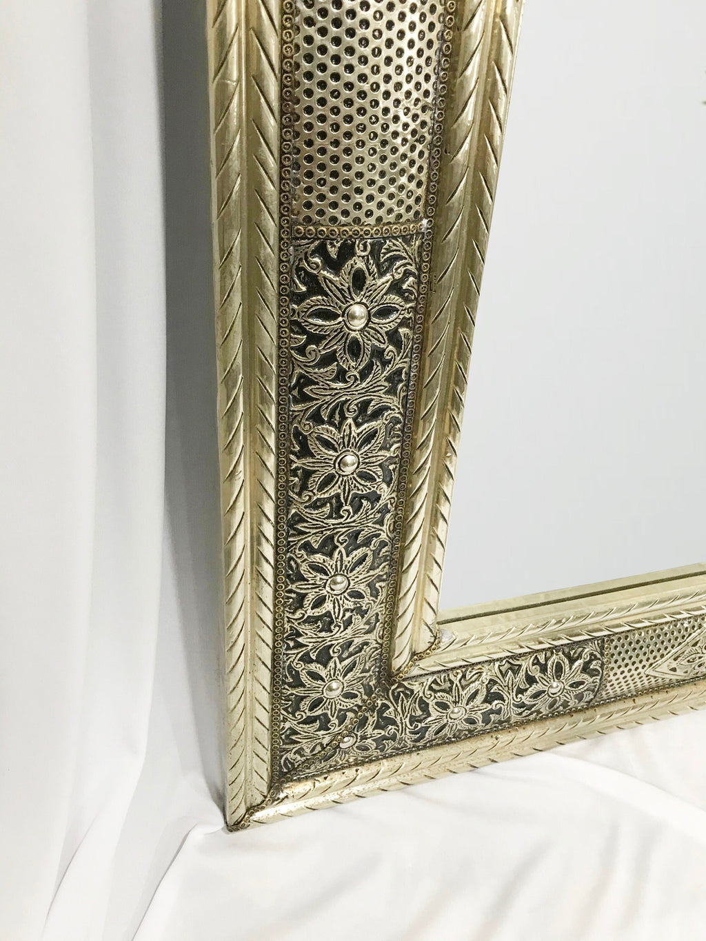 Vintage Moroccan Mirror, Floor Mirror, Large Mirror, Big Mirror, Silver Mirror, Hand Engraved Mirror, Decorative Wall Mirror, Ornate Mirror