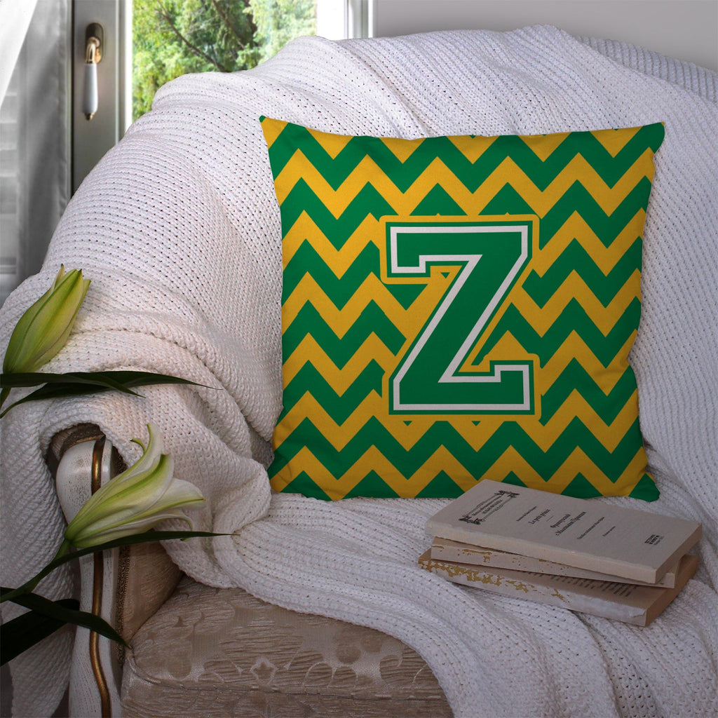 Letter Z Chevron Green and Gold Throw Pillow - 14x14 Decorative Pillow – Art for Your Home & Patio CJ1059-ZPW1414