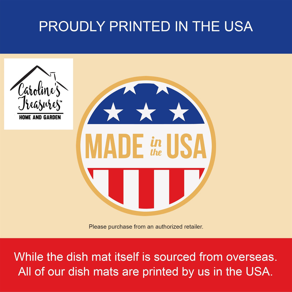 Shown here is the Lots of Great Pyrenees Dish Drying Mat from Caroline's Treasures featuring artwork of a Great Pyrenees in a Everyday design. The detailed illustration and vibrant colors make it a standout accent for your home. Celebrate the joyful spirit of your favorite pups with our Lots of Dogs Collection. Featuring playful multi-breed designs and cheerful illustrations, this collection brings vibrant personality and heartwarming style to home d�cor and thoughtful gifts. Say goodbye to messy countertops and soggy dish towels with our innovative dish drying mat. Our high-quality dish drying pad is designed to keep your countertops dry while offering a stylish and efficient solution. Whether you're air drying dishes, glasses, stemware, silverware, pots, pans, bottles, or even fruits and vegetables, our dish mat is the perfect choice. The 14 inches x 22 inches size fits most counters and dish drying racks, and the non-slip design ensures stability. Made with water-absorbent polyester and a polyurethane foam insert, our dish drying mat is not only functional but also durable. It's machine washable and printed in the USA for long-lasting use. The beautiful artwork adds flair to your kitchen decor, making it a perfect housewarming gift or present for any occasion. Upgrade your kitchen experience with our absorbent and versatile dish drying mat. Great Pyrenees dogs are large guardian breeds known for their calm confidence and protective instincts. This mountain breed is admired for its loyalty, patience, and steady vigilance. Perfect for: Kitchen counters and sinks, everyday dish drying and countertop protection, Dogs-themed homes, or year-round use for Great Pyrenees lovers. Makes a heartfelt gift for: Great Pyrenees owners, Dogs lovers, Everyday gifts, pet parents, friends who adore their Great Pyrenees, or anyone celebrating Dogs.