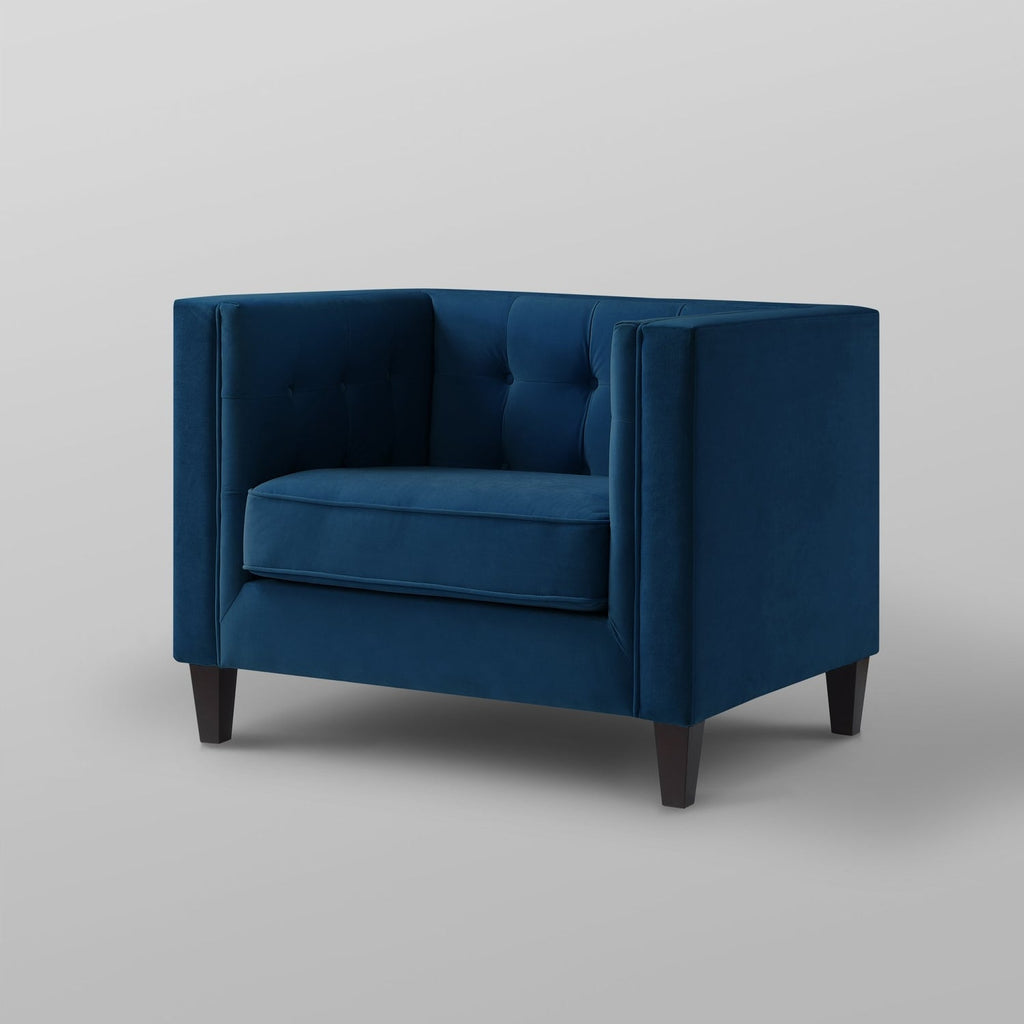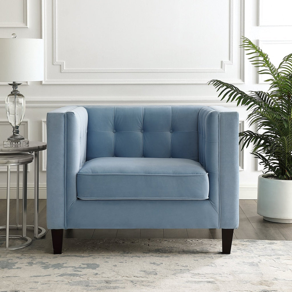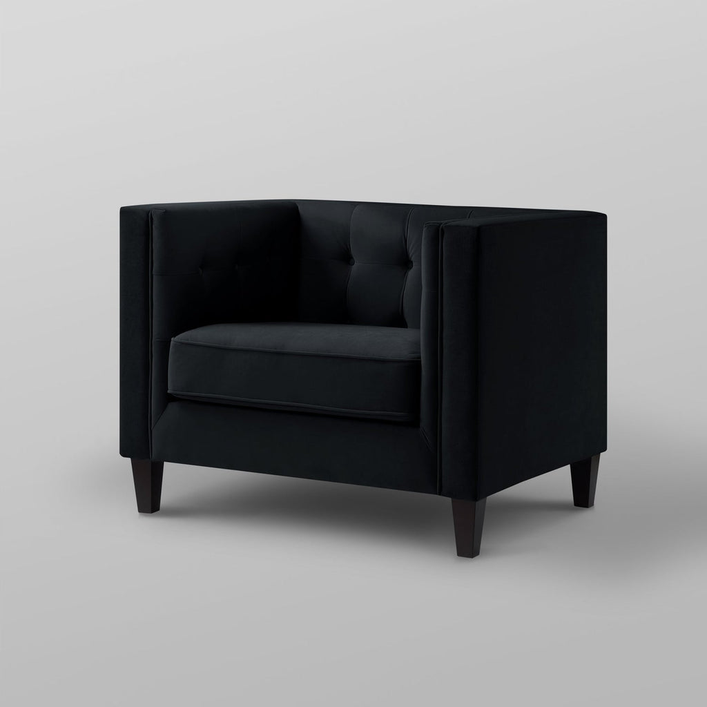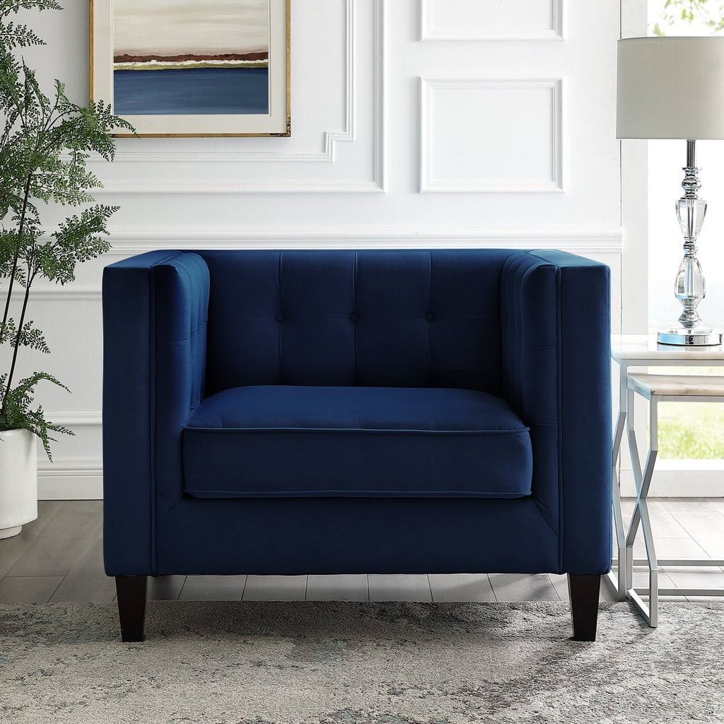 - ELEGANT DESIGN - Traditional style club chair w/ modern appeal, handcrafted upholstery with buttery soft velvet fabric will make a statement in any room. Tuxedo square silhouette will perfectly match with every design theme