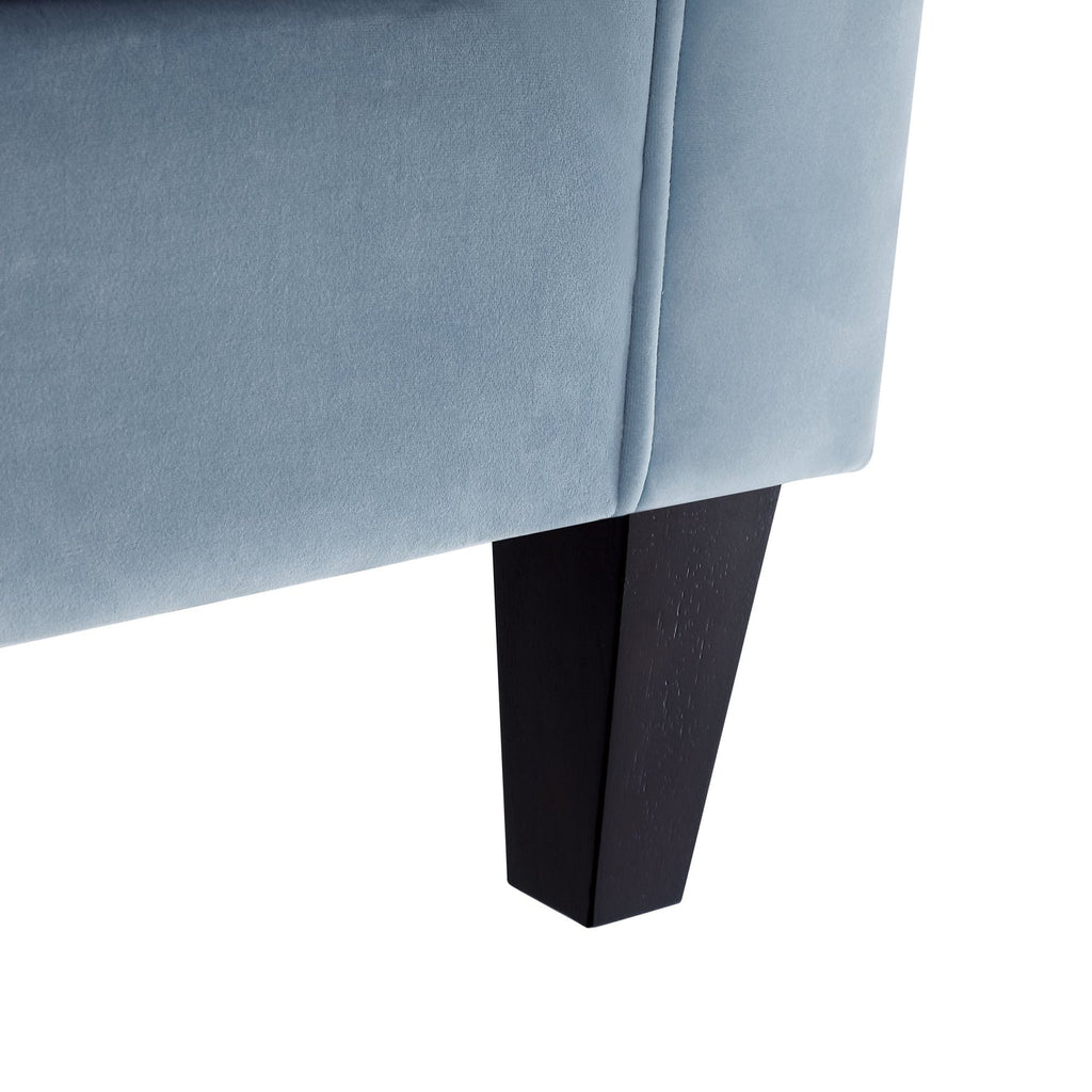 Our velvet Tuxedo club chair adds a gentle sophistication in the confines of your living room, bedroom or entryway. This simple but elegant at the same time accent piece provides both functionality and a focal point of color and style that seamlessly blend with your main furniture to create a dynamic and cozy interior space to come home to. Straight lines, square arms, soft velvet handmade upholstery, biscuit button tufting and espresso finish tapered legs makes a brilliant combination for a perfect statement piece. Frame is made of combined solid wood and plywood, which makes construction to be firm and stable, and individually wrapped pocket springs give a nice support as you sit.