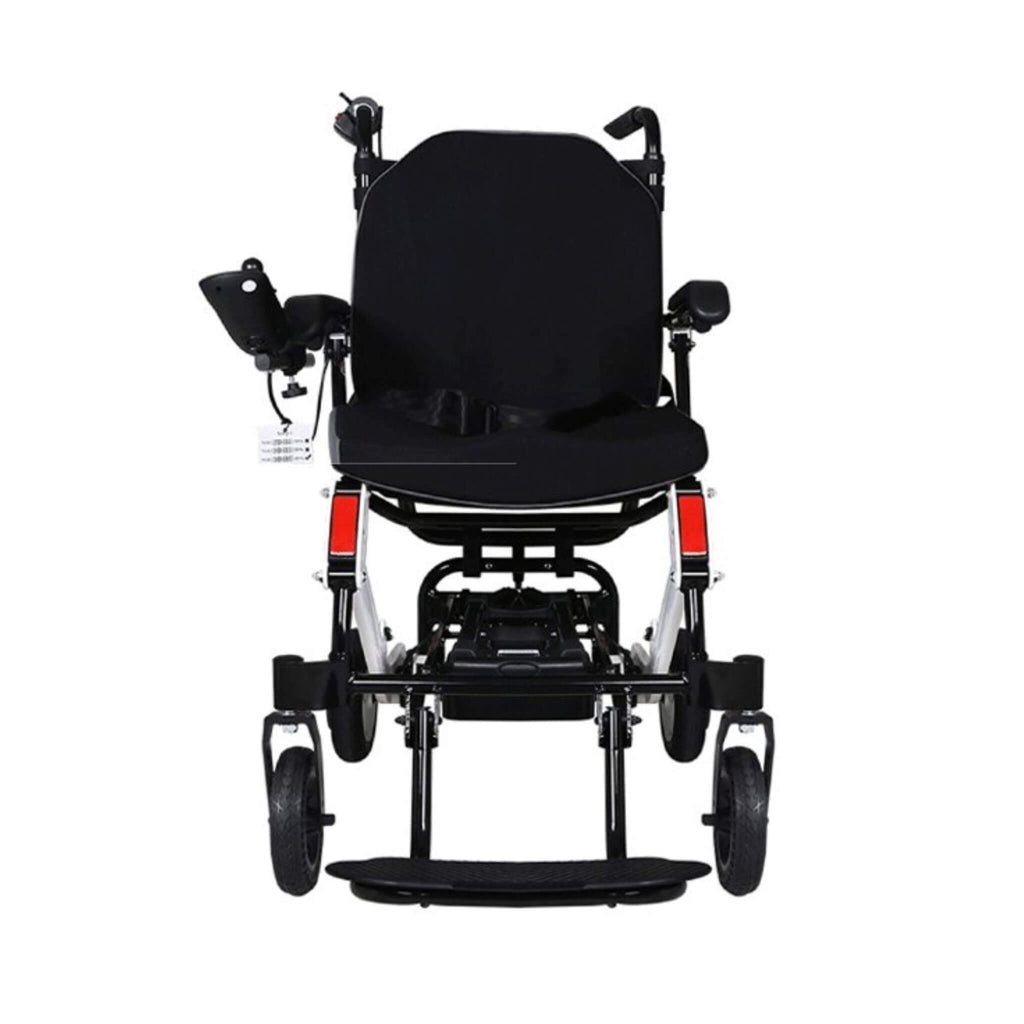 - Fitted with electromagnetic brakes, the power wheelchair goes to a full stop when you let go of the joystick. It also has an anti-theft locking feature, making it safe to leave unattended at times.