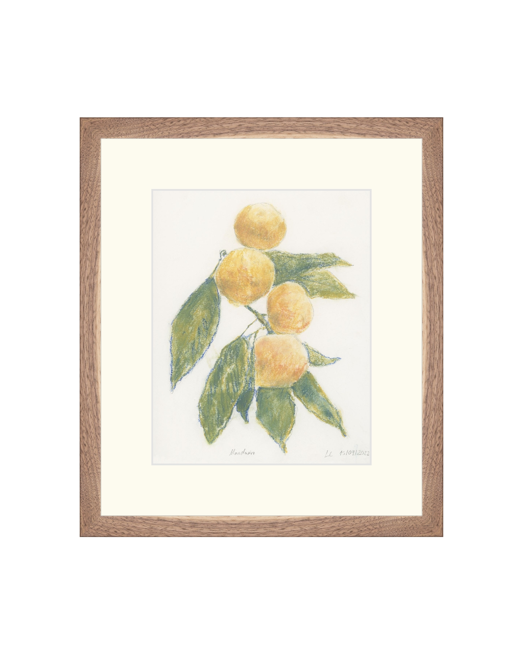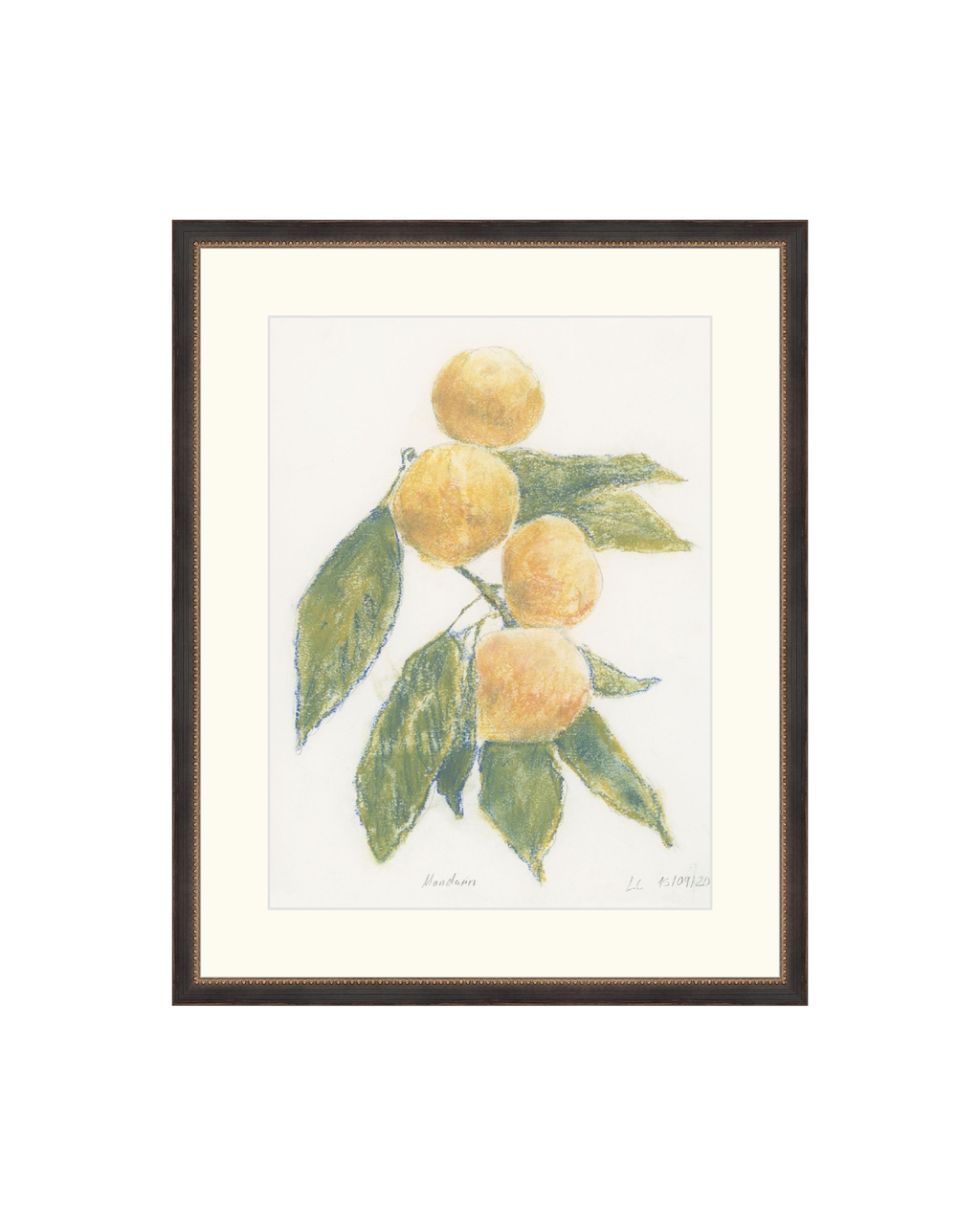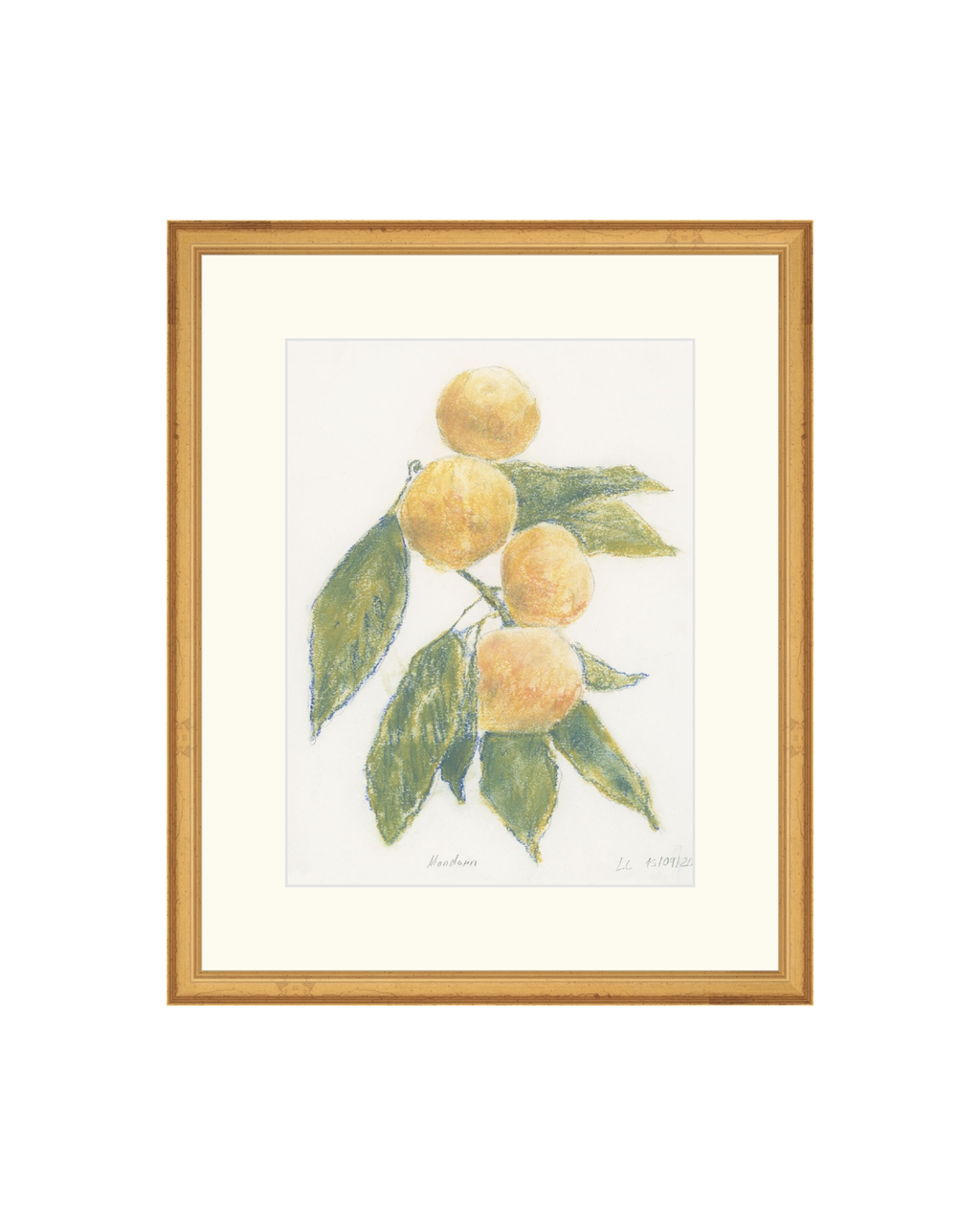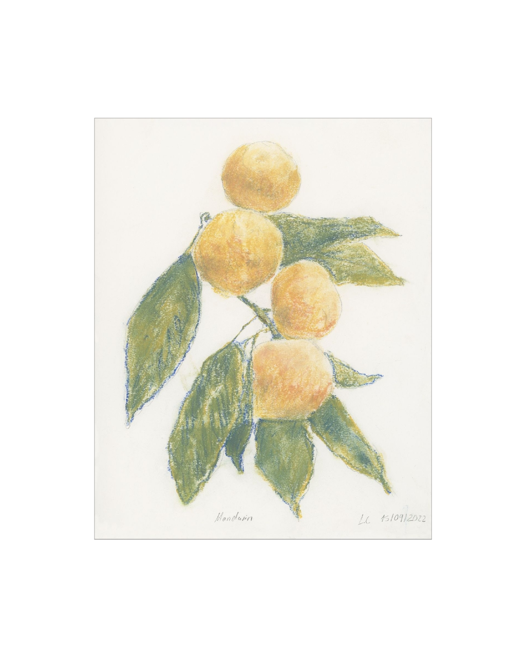 Delicate Pastel Drawing of Mandarin branch. Art by Lucia Chinaleong.