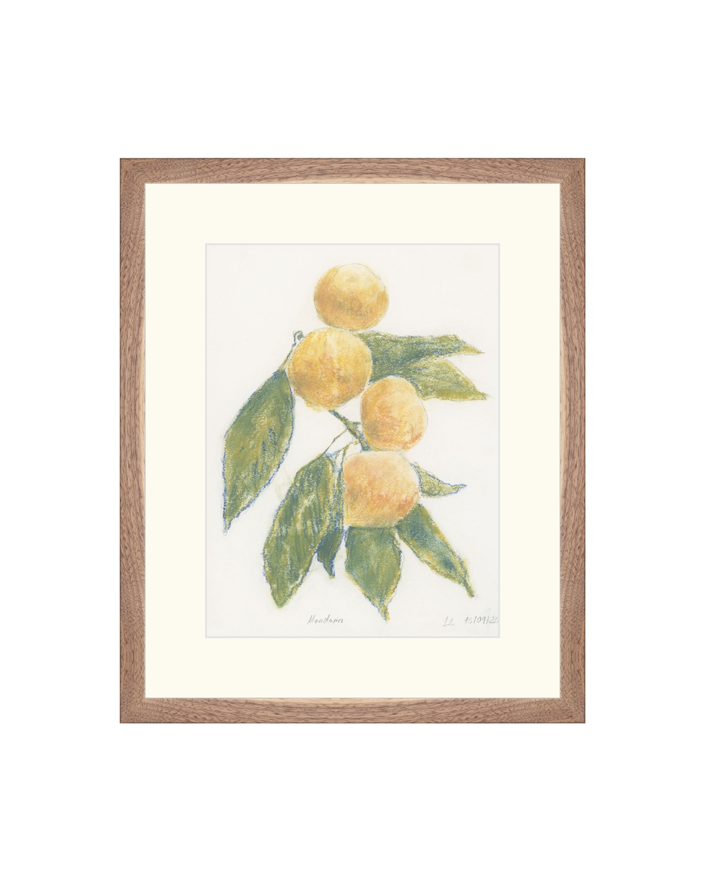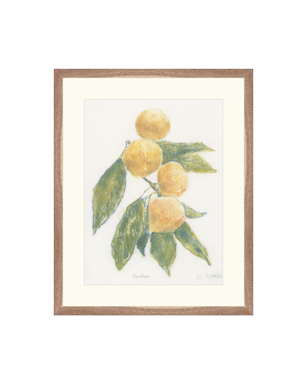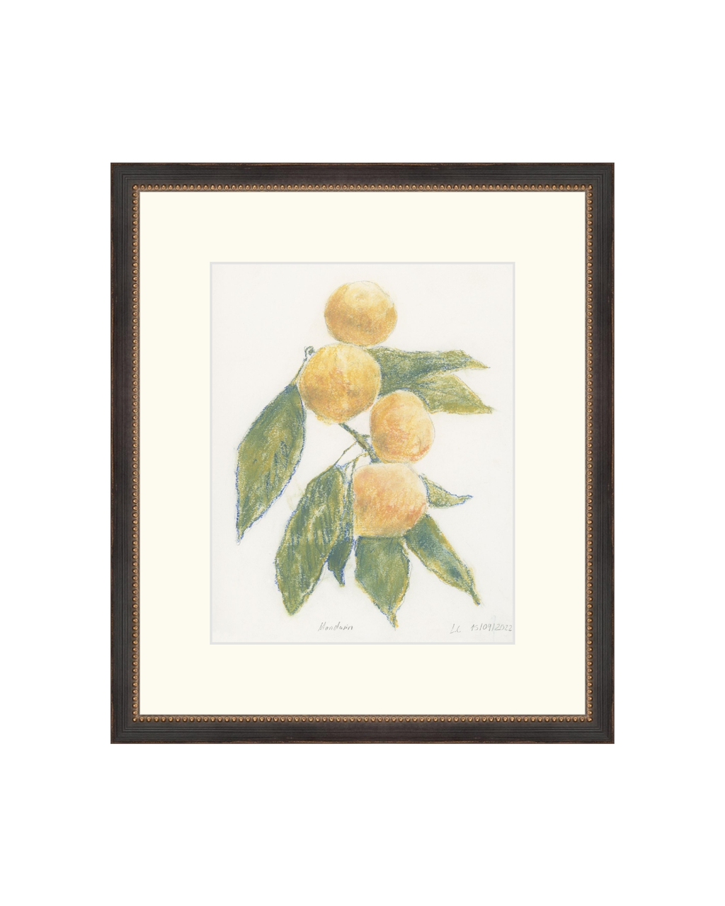 Delicate Pastel Drawing of Mandarin branch. Art by Lucia Chinaleong.