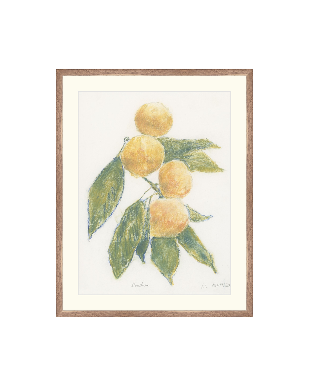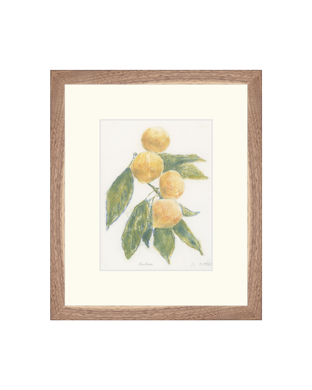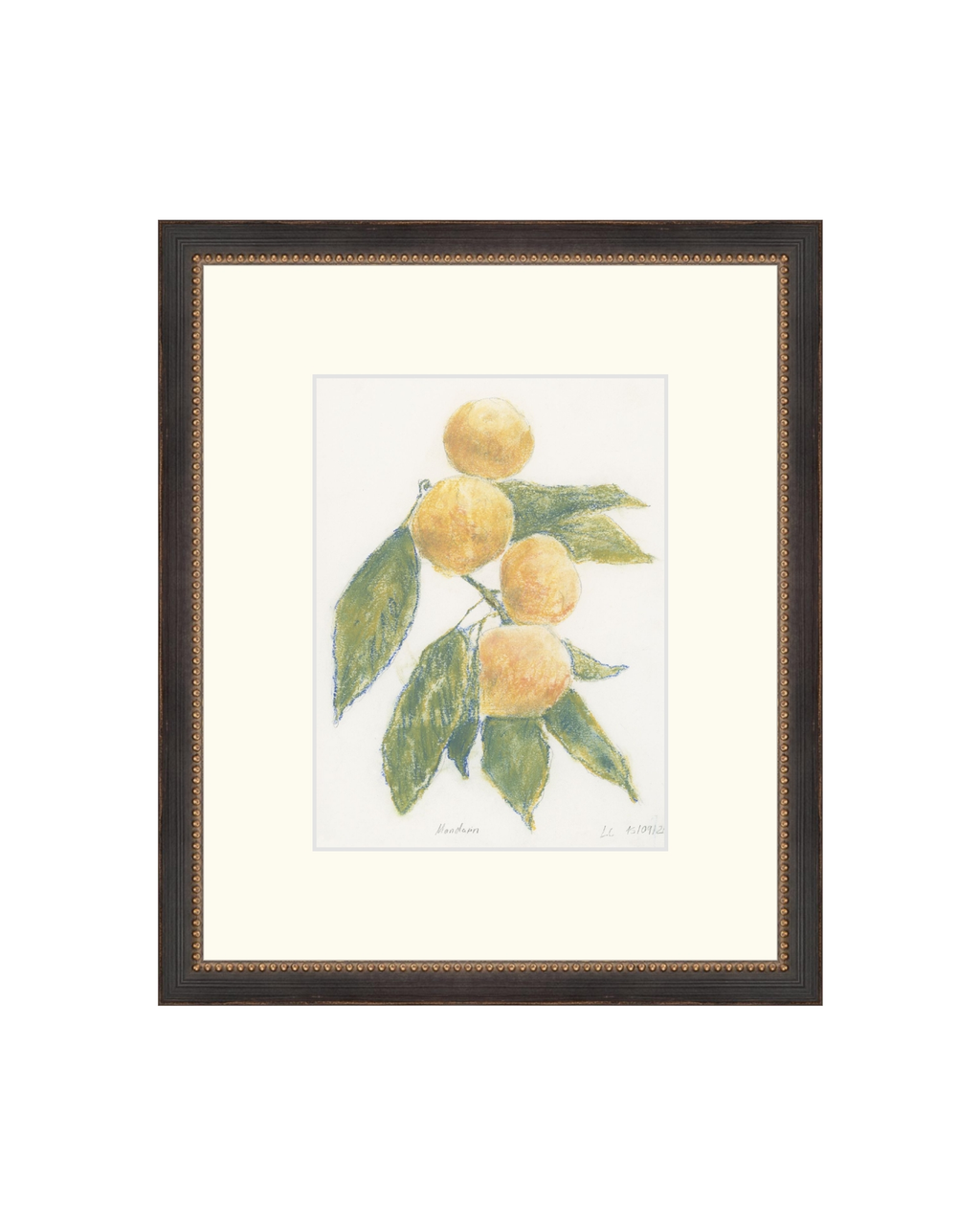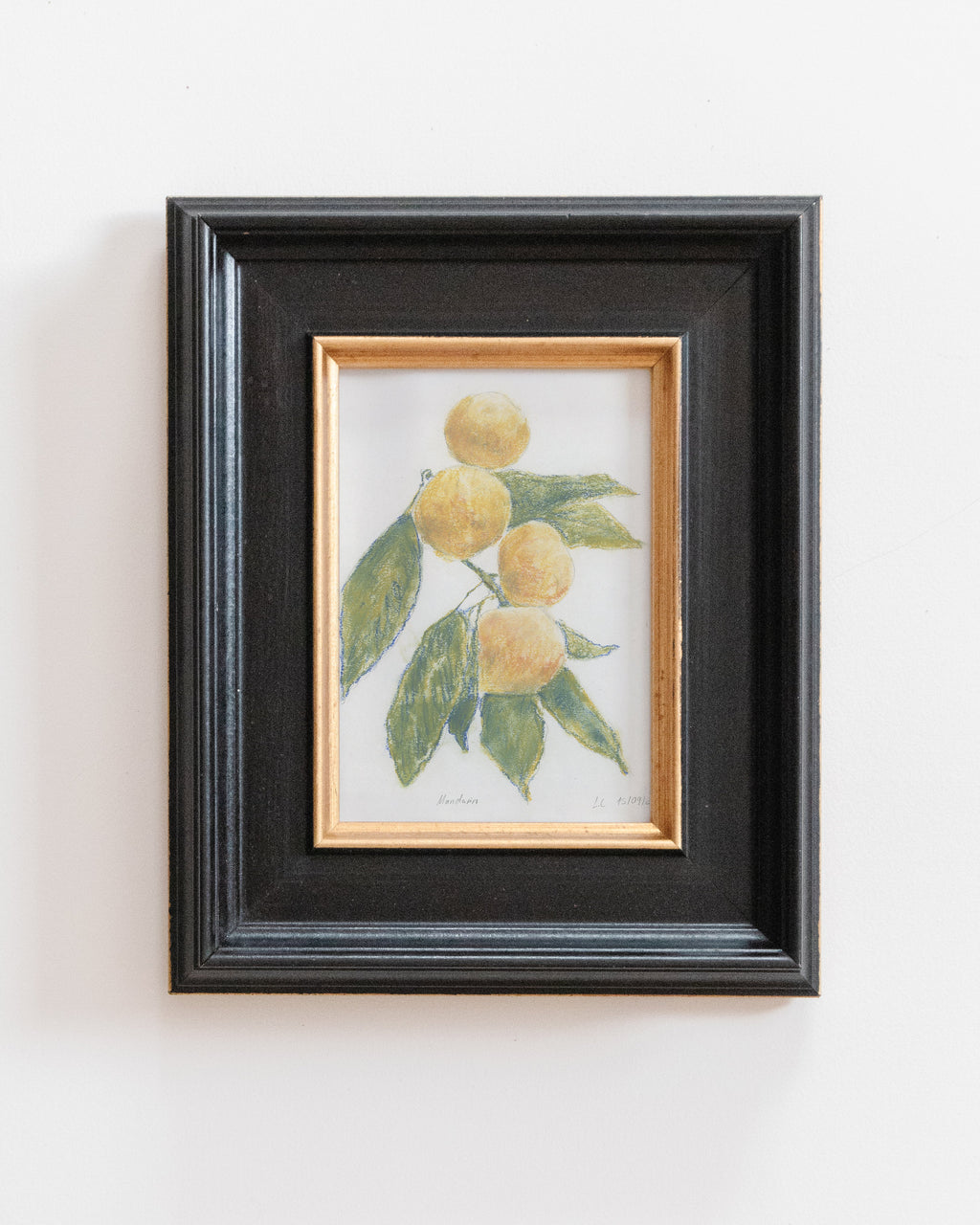 Delicate Pastel Drawing of Mandarin branch. Art by Lucia Chinaleong.