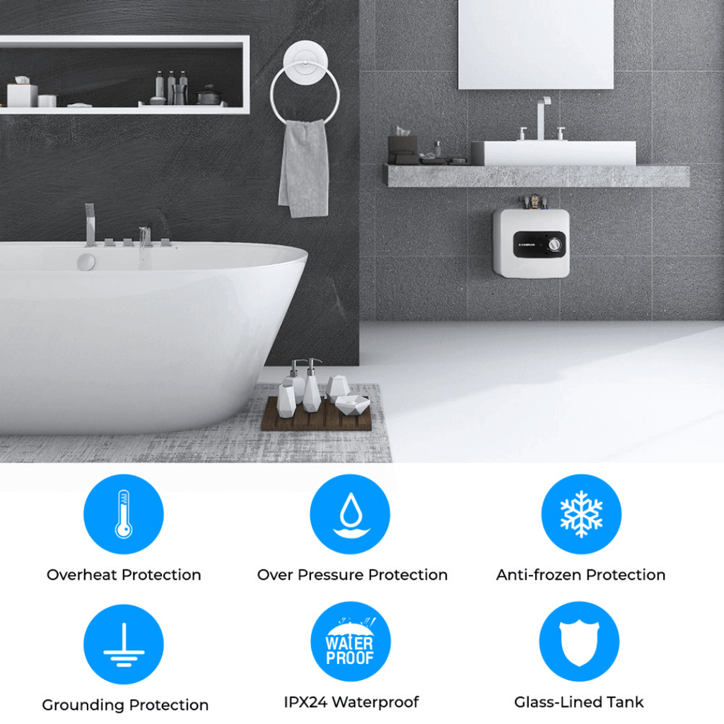 • HIGH QUALITY & LONG LAST-Electric water heater is easy to maintain and has glass-lined tank for long service life.
