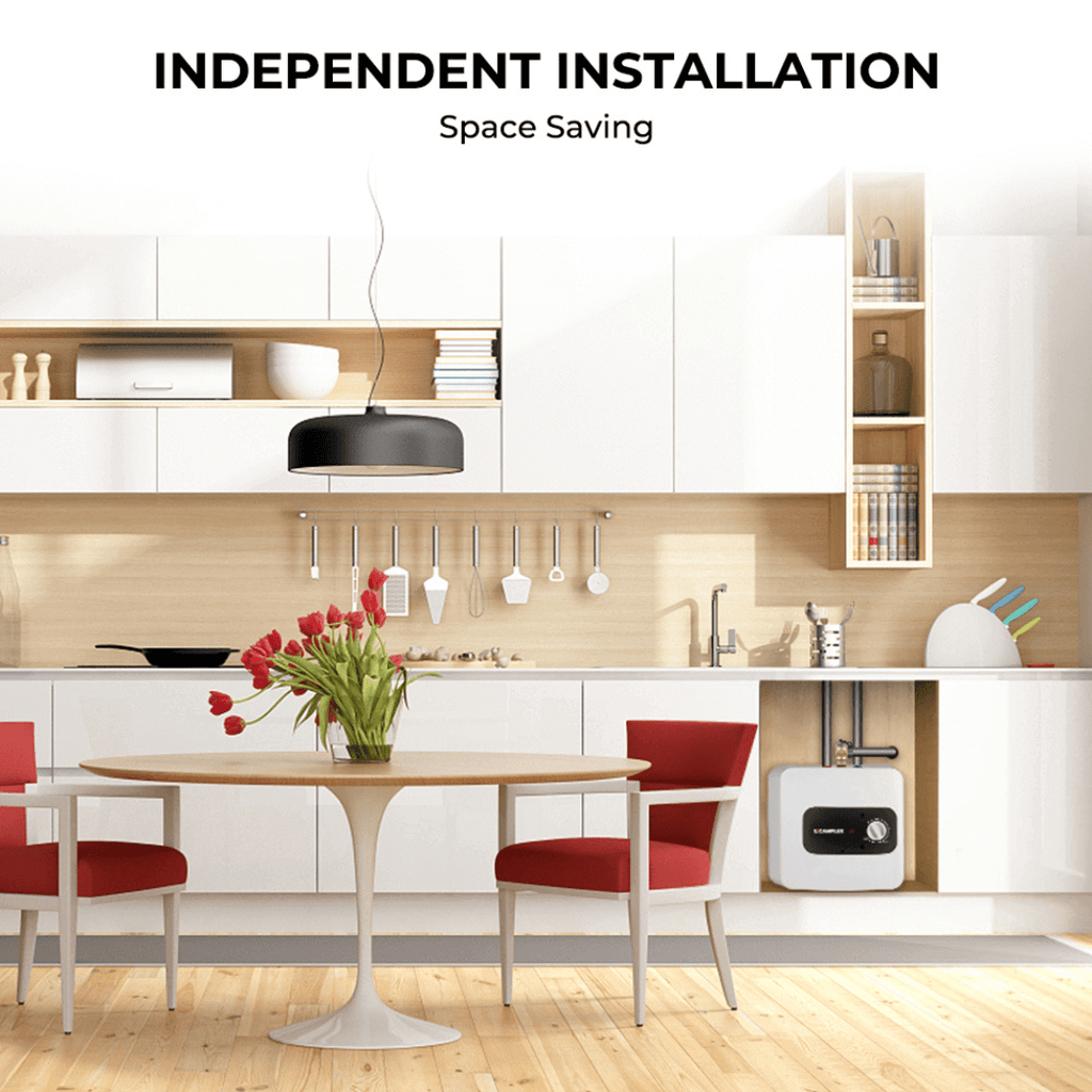 • MULTIPURPOSE - Can be shelf, wall or floor mounted; Simply tap into the cold water line and install the water heater directly at the sink to provide hot water. Product dimension:12.9" W x 12.9" H x 11.5" D.