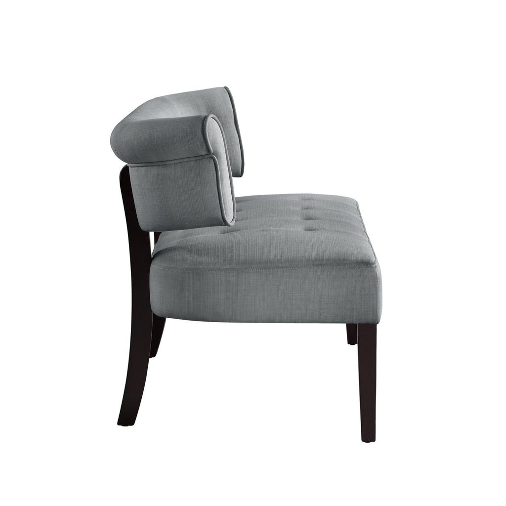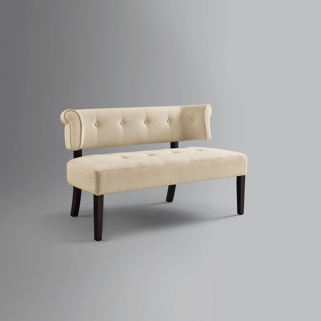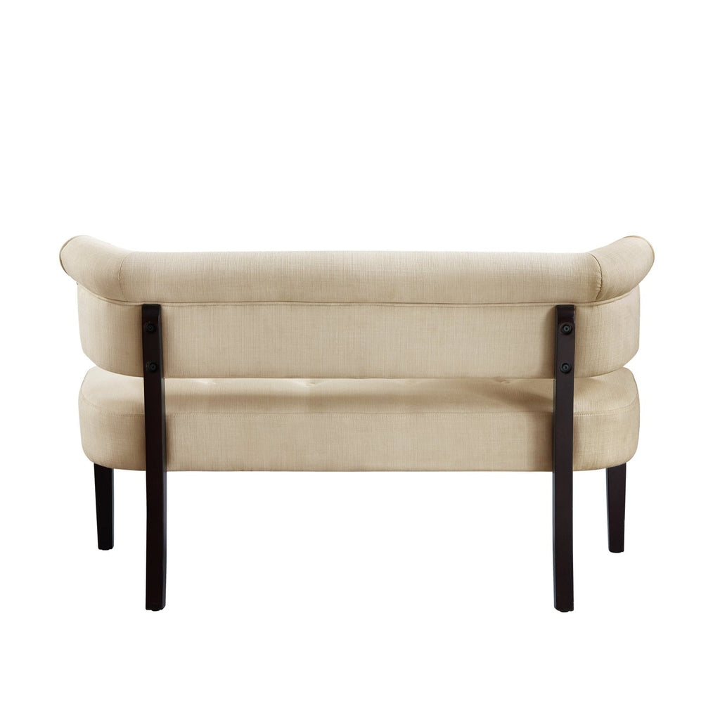 A modern update on a classic design, this charming settee bench with curved back is more than just a place to take a seat. The transitional style of this bench allows it to blend any home existing décor. This loveseat is a beautiful addition to your entryway, living room, bedroom or dining room to enhance the style and comfort at home. Our lovely bench, upholstered in velvet or linen fabric of your choice, features button tufting, curved back silhouette and square tapered legs in espresso finish. It makes a statement no matter where it’s stationed, giving eye-catching contemporary appeal to your space.