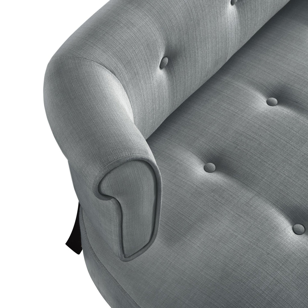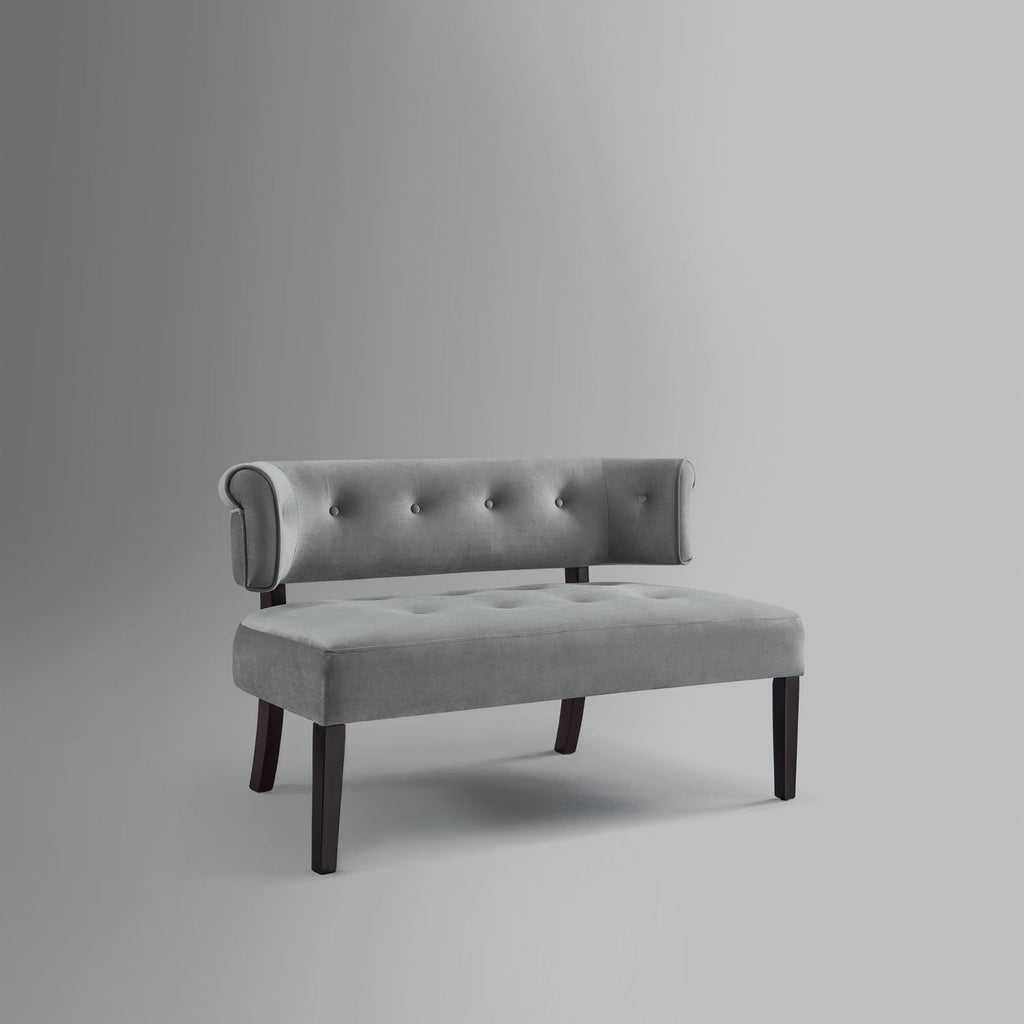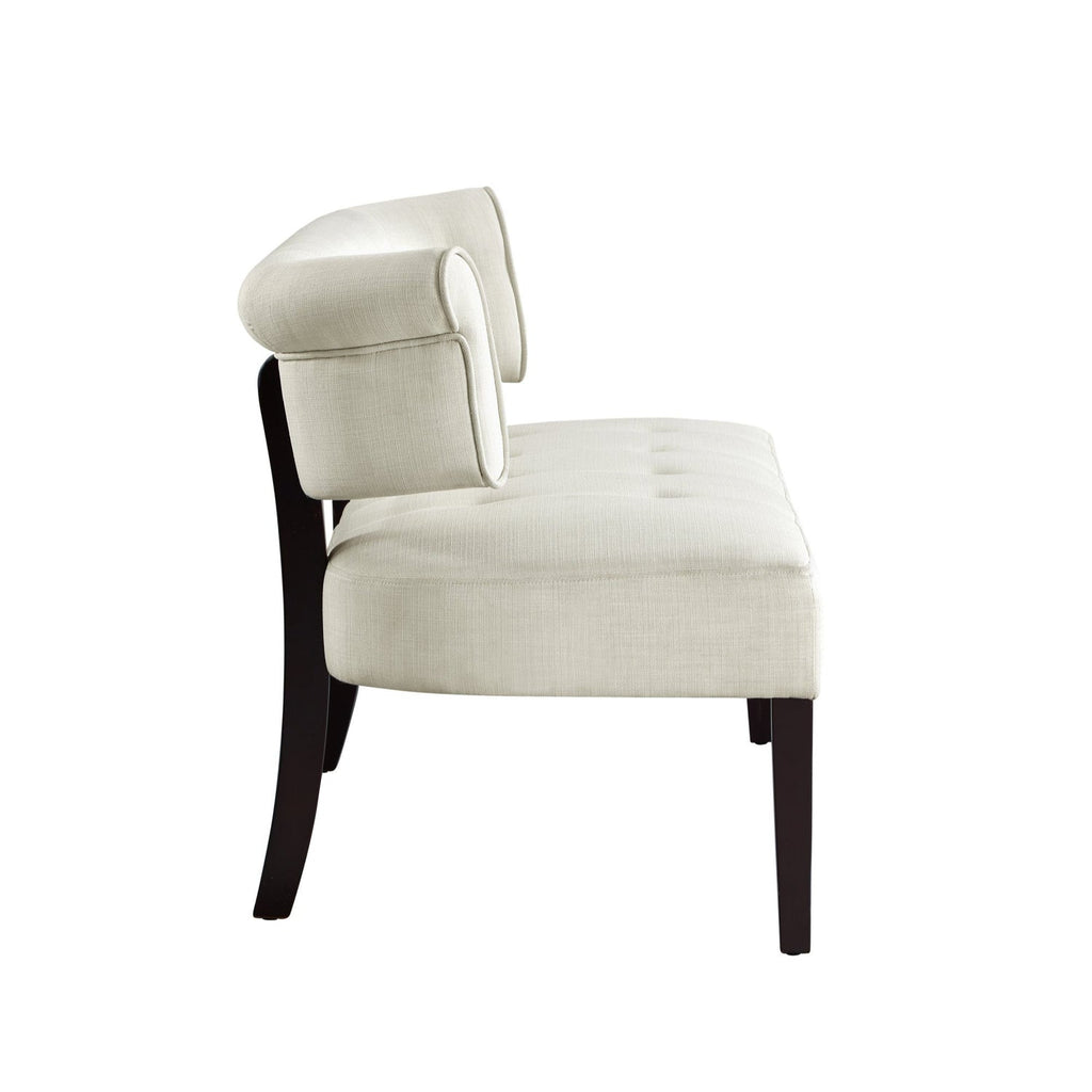A modern update on a classic design, this charming settee bench with curved back is more than just a place to take a seat. The transitional style of this bench allows it to blend any home existing décor. This loveseat is a beautiful addition to your entryway, living room, bedroom or dining room to enhance the style and comfort at home. Our lovely bench, upholstered in velvet or linen fabric of your choice, features button tufting, curved back silhouette and square tapered legs in espresso finish. It makes a statement no matter where it’s stationed, giving eye-catching contemporary appeal to your space.