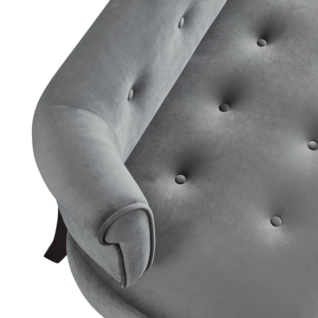 • ATTRIBUTES: Upholstered, Button Tufted, Curved Back
