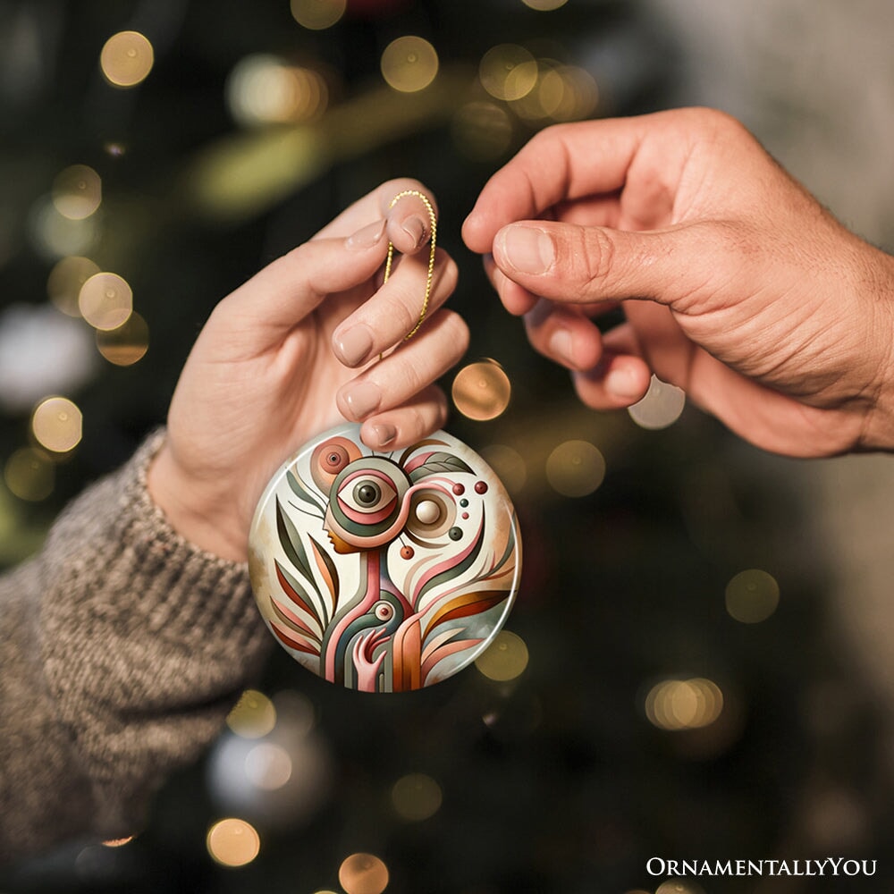 Dive into a realm of imagination with this Modern Abstract Art ornament, where surreal shapes and vibrant colors converge in a dance of creativity. Each curve and line tells a story beyond the ordinary, making it a stunning addition to your holiday decor or a unique keepsake. Let this whimsical piece infuse your space with artistic wonder and festive flair. 🎨🌟