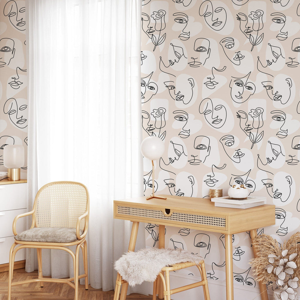 Add a modern femme flair to your walls with our Abstract Line Face Wallpaper! Make your home or office look sophisticated and stylish with peel and stick removable wallpaper.