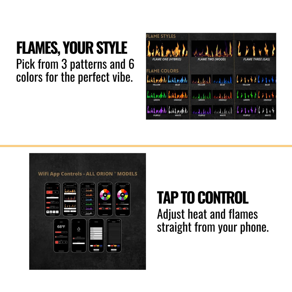 - Control the heat and flame settings independently for personalized comfort. With app-enabled WiFi control via the Modern Flames App, you can conveniently adjust the fireplace settings from your smartphone, making it easy to set the mood from anywhere in the room.