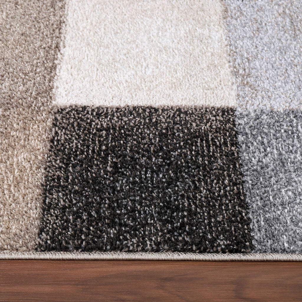 Modern Living Room Rug Fiesta Patchwork Look in Beige and Grey