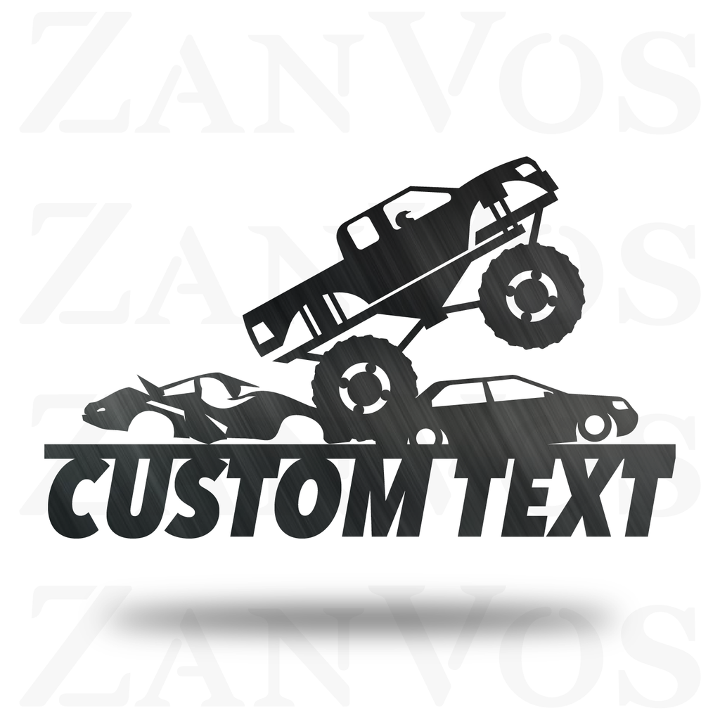 Crafted from durable 16-gauge steel with a powder-coated finish, this Monster Truck Monogram captures the thrill of a monster truck leaping over crushed cars. Its sturdy design ensures lasting strength, making it a bold statement piece for any fan. Perfect for adding a rugged, adventurous touch to your space while celebrating the excitement of monster truck events.