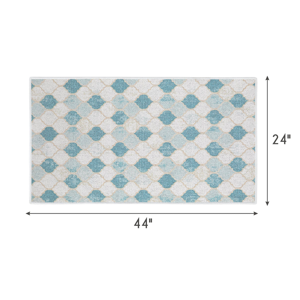 Moroccan Design Multipurpose Floor Mat | 24"x44" | Beige&Blue
