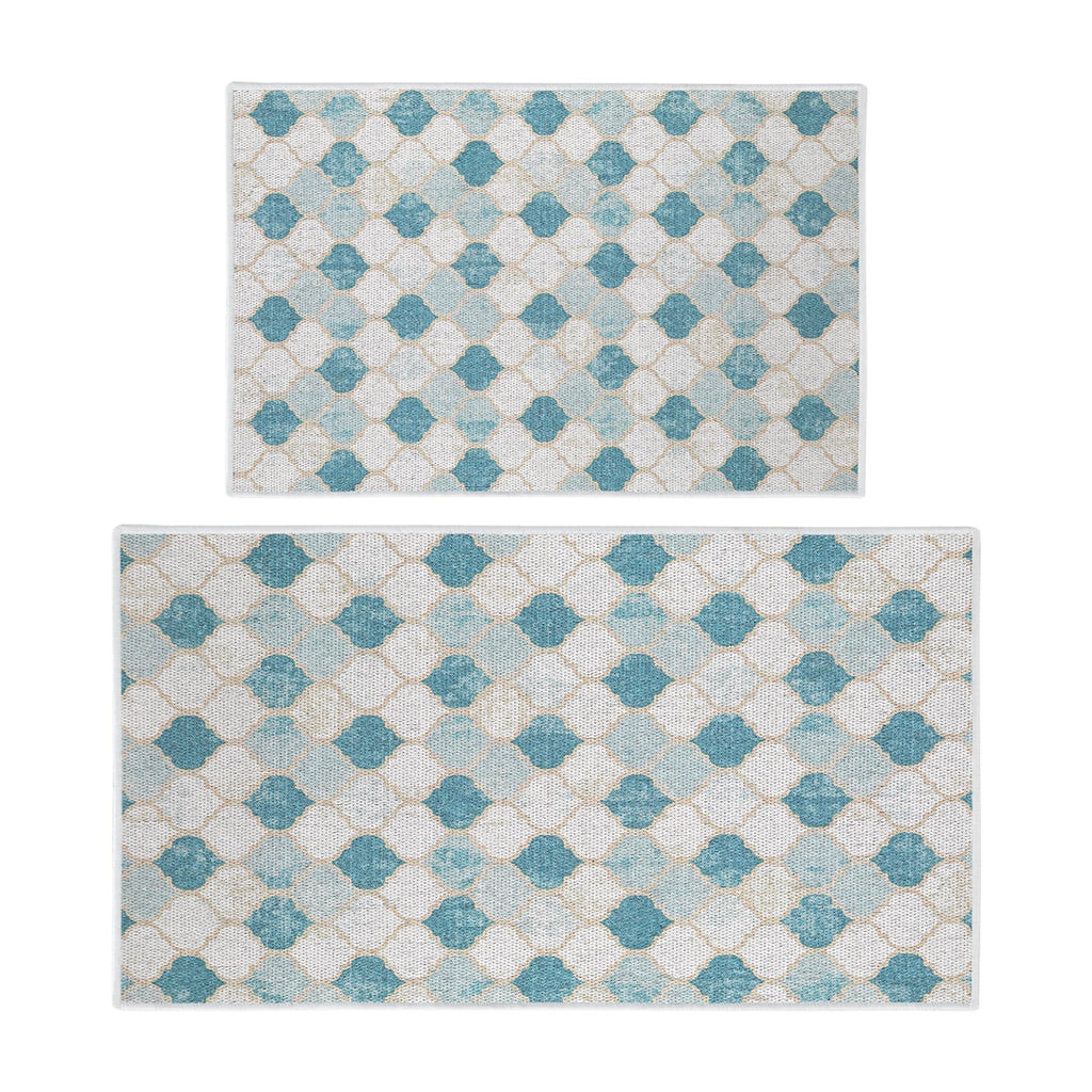 Moroccan Design Non Skid Washable Kitchen Runner Rugs Set of 2| 44 x 24 and 31.5 x 20 Inches Floor Mats |Beige&Blue