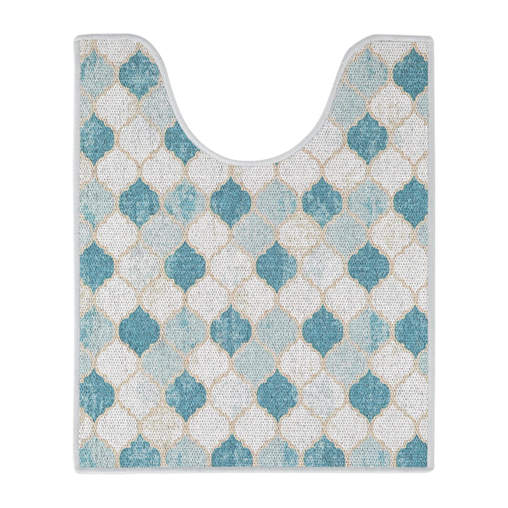 Moroccan Design U Shape Bathroom Rug | 20”x24" | Beige&Blue