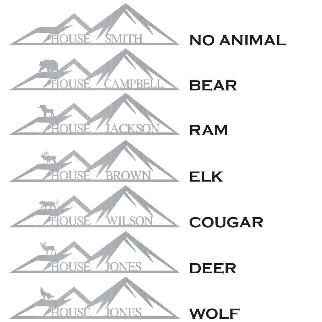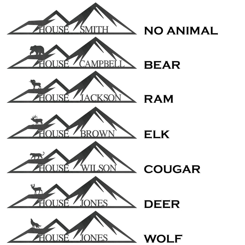 Crafted from durable 16-gauge steel with a powder-coated finish, this Mountain House Monogram features a striking mountain silhouette paired with your choice of animal and personalized text. It’s designed to add a meaningful, custom touch to your home or cabin, blending rugged style with personal significance.
