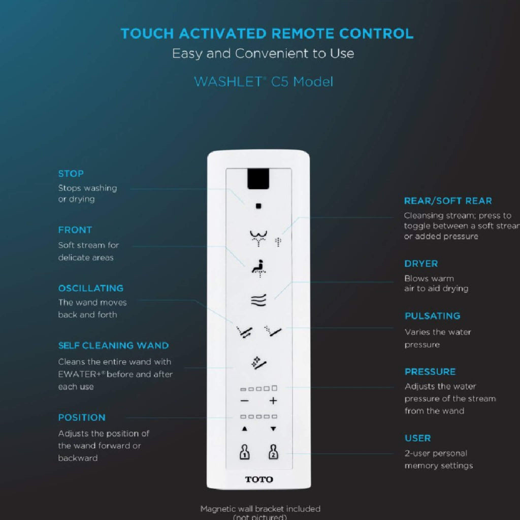 - Elevates personal hygiene through the integrated WASHLET+ C5 bidet seat featuring warm-water dual-action spray, warm-air dryer, heated seat and automatic air-deodorizer.