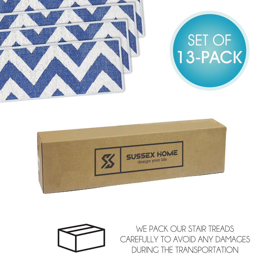 Combine the safety of your family with protection for your stairs with our carpet stair treads. With our long-lasting and comfortable stair treads in place, you'll never have to worry about unfortunate stair accidents happening to any of your family members. The Stair Treads by SussexHome will help safeguard your family from slippery and hard-edged stairs while also protecting your hardwood stairs from wear and tear. Our stair treads are available in packs of 4, 7 and 13 - any leftovers can be used for any other areas in the house that needs anti-slip protection!