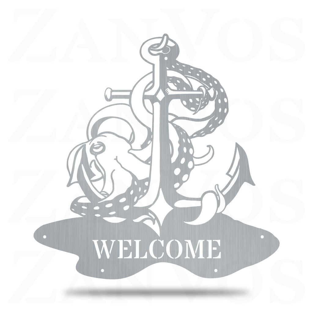 This personalized monogram features a detailed octopus wrapped around a large anchor, crafted from durable 16 gauge steel with a powder-coated finish for lasting appeal. The custom text at the bottom adds a unique, personal touch, making it a meaningful and supportive addition to your décor. Its sturdy design ensures it will be a cherished piece for years to come.