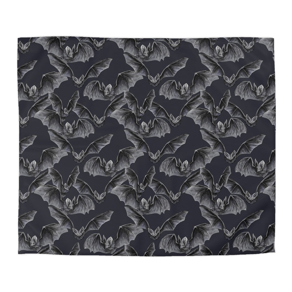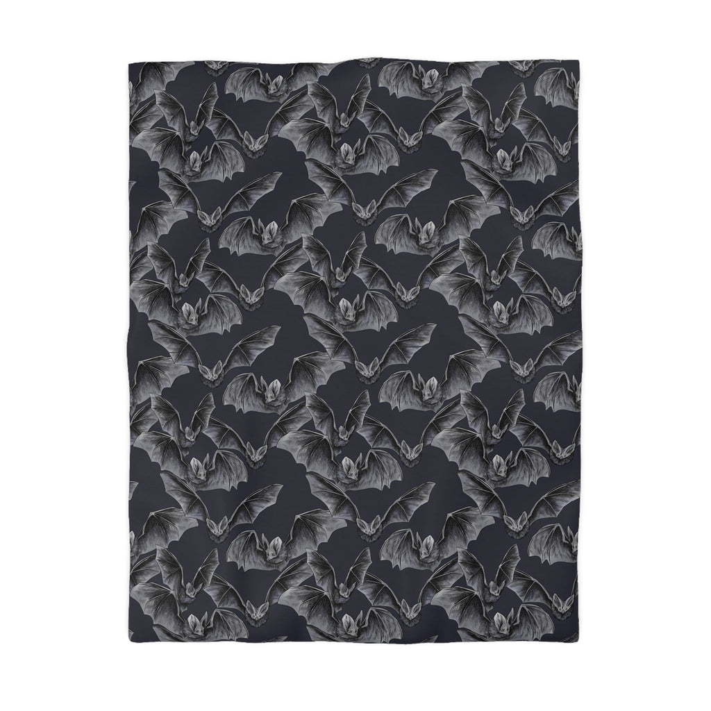 This duvet cover is a fun and cozy accessory for your bed. This duvet cover features a pattern of various bats on a gray background. The duvet cover is made of 100% polyester microfiber, which is soft, durable, and wrinkle-resistant. It has a zipper closure at the bottom that makes it easy to insert and remove your duvet, and gives it a seamless and elegant look.