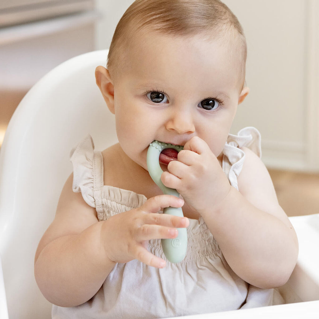 Sensorimotor devices designed to help babies and toddlers practice their feeding, munching, biting, and chewing skills. Each set includes 3 tools (Loop, Smile and Stick).