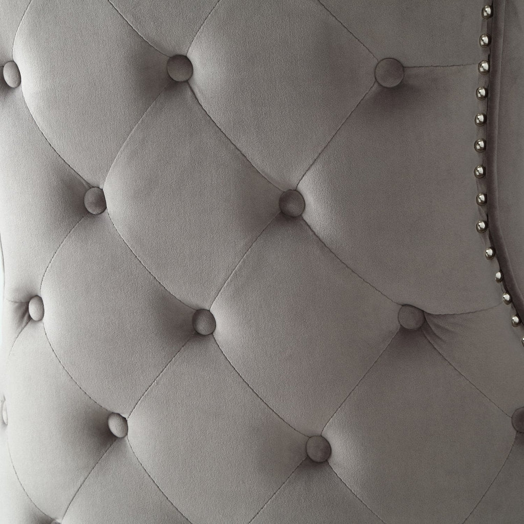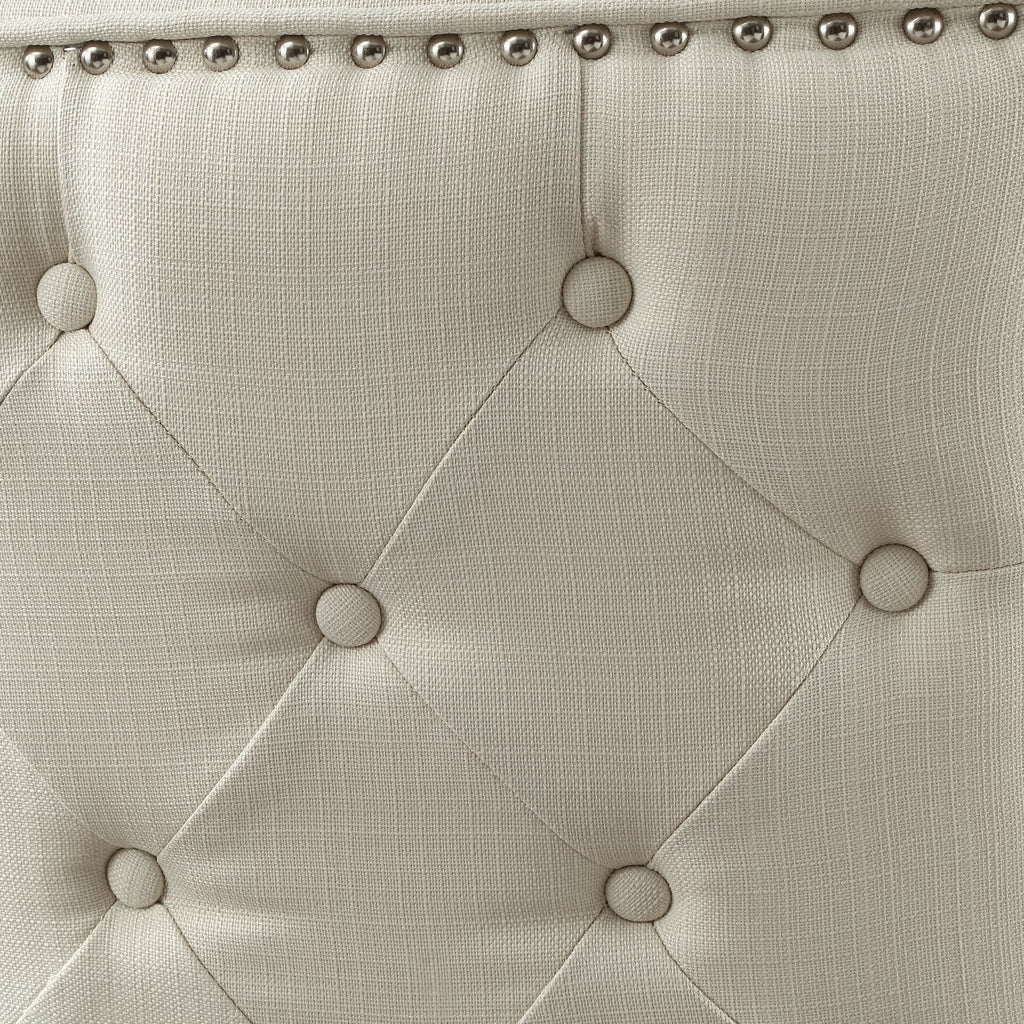 • ATTRIBUTES: Button Tufted, Armless, Chrome Nailheads