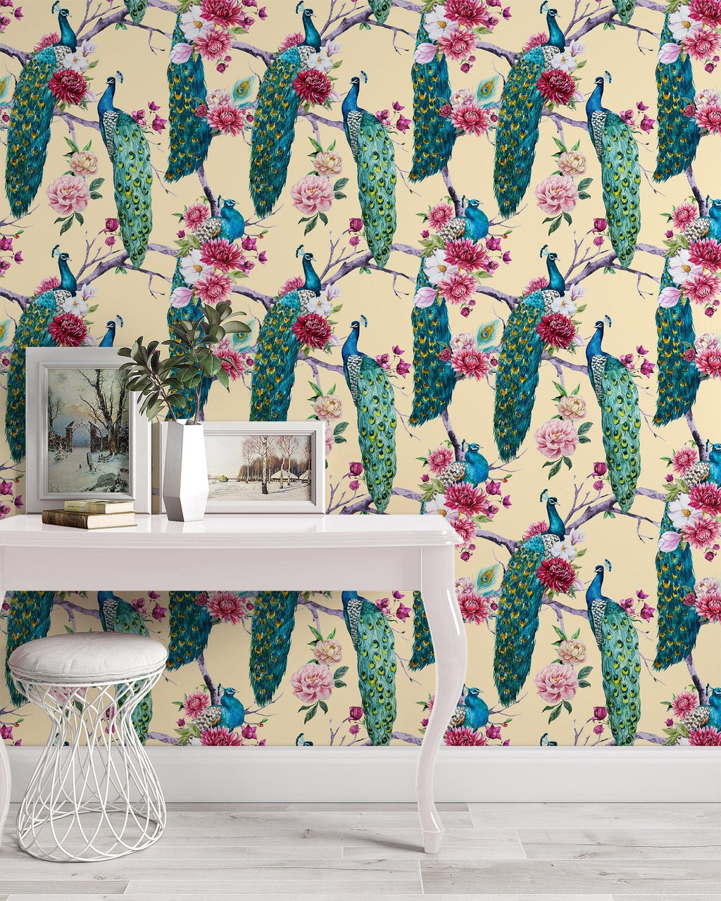 These graceful peacocks with pink magnolias are perfect combination for a beautiful wall decor in any room.