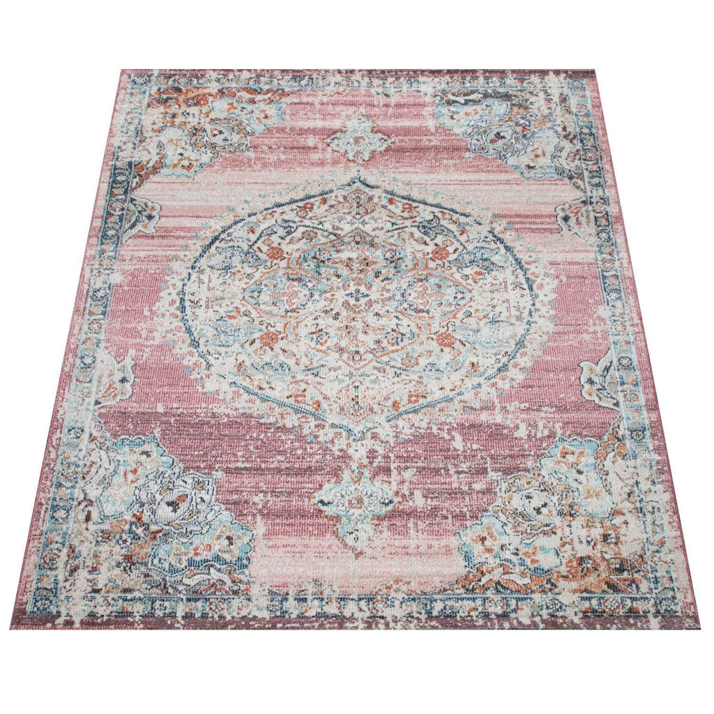 Pink White Outdoor Rug For Patio Oriental Pattern