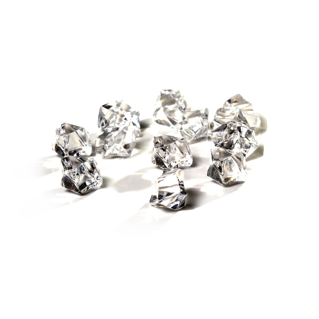 These tiny plastic chipped ice props are a great way to preserve the color and quality of drinks on camera or during plays. Used for continuity and clarity, these plastic ice cubes eliminate problems associated with real ice. They never melt and are optically clear. They come in an assortment of shapes. All are 1/2" to 3/4" in diameter. Reusable and non-toxic. Safe for use when consuming liquid. Comes as a set of 12 pieces.