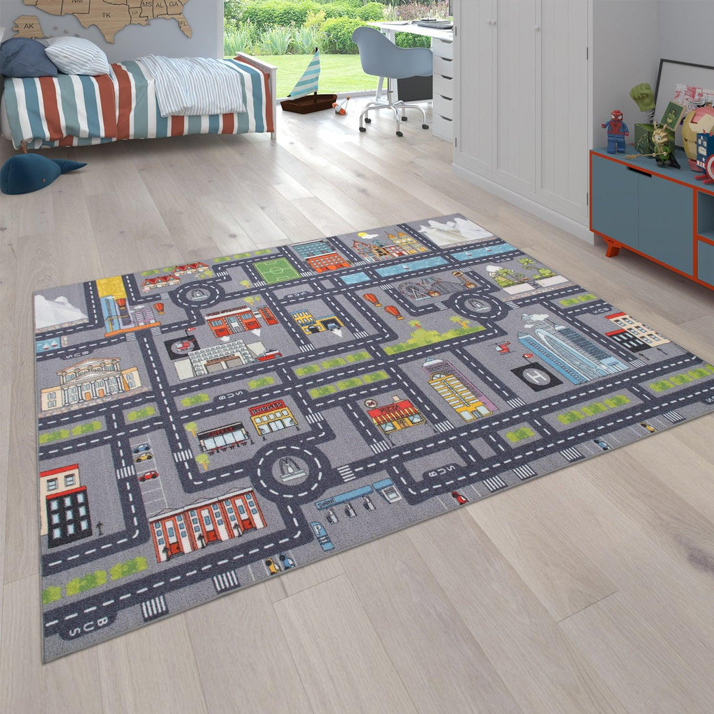 Play Rug for Nursery Cars Roads City Motife for Child's Room in Grey