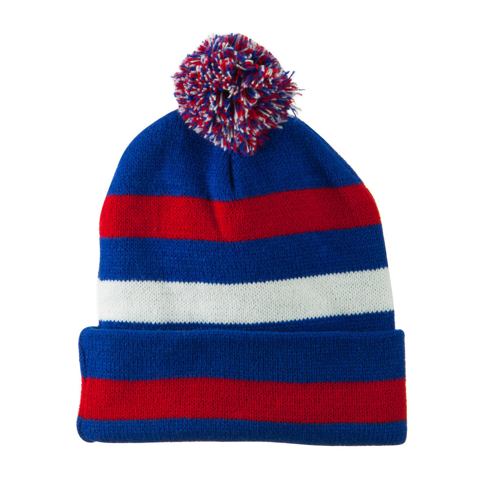 Design Details, Striped beanie with cuff and pom pom accent